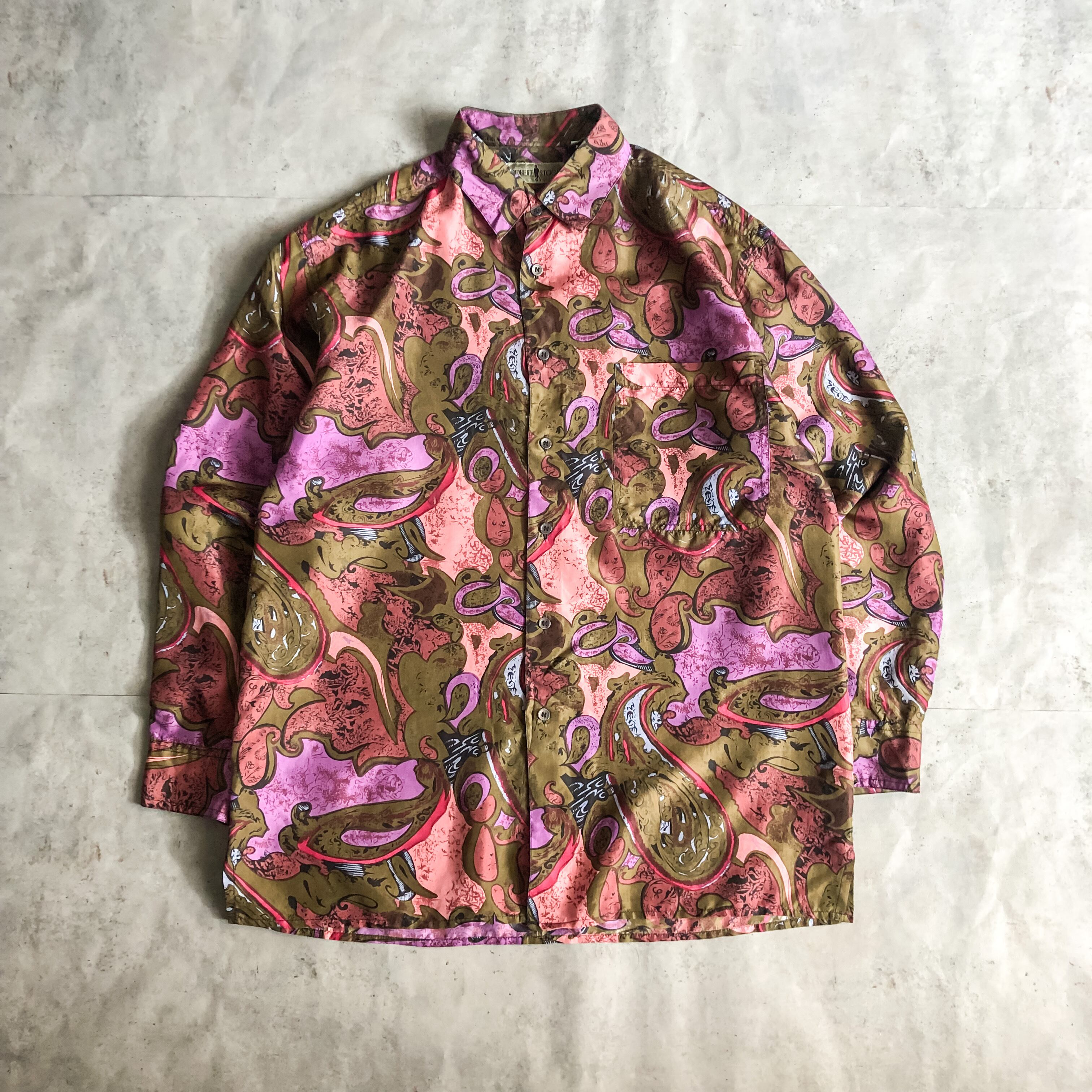 Dead stock! 1990's~ "ROBERT STOCK" patterned allover silk shirt