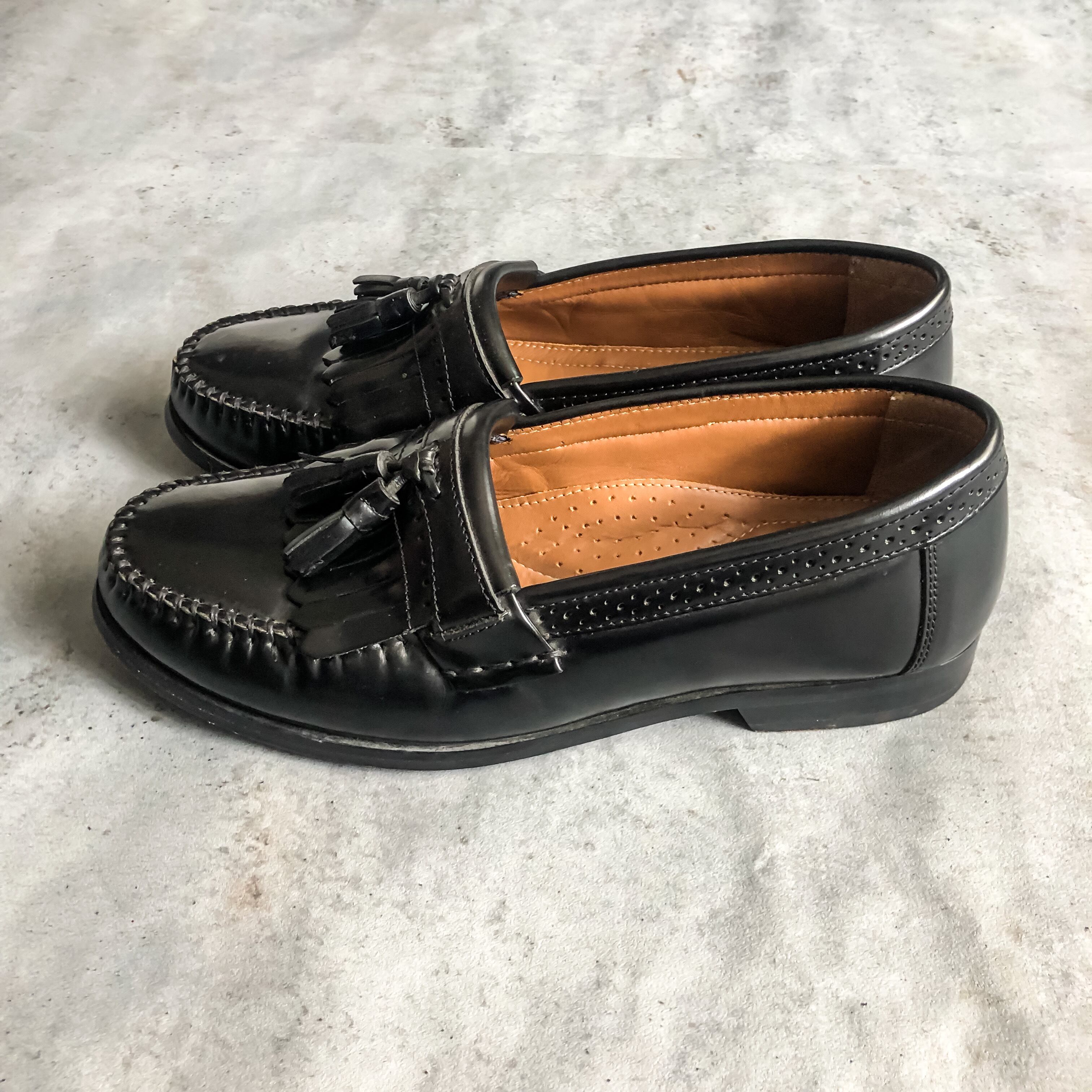 G.H. BASS black leather quilt×tassel loafer made in Brazil
