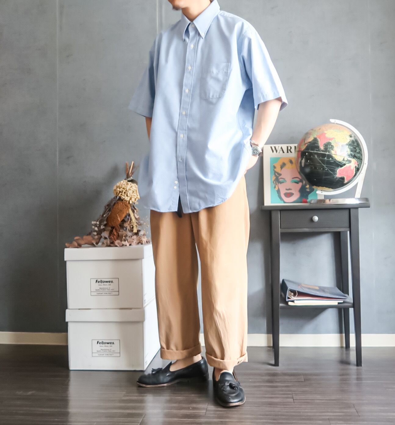 オックスフォードシャツ多く見られる定番なボタンダウンタイプで、飽きもこず長く着られるデザインですので、着つづけることによって自分だけの味わいを持つようになるという楽しみ方も出来ますね。