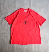 赤ボディーにフロントには蜘蛛と蜘蛛の巣のプリントで、バッグプリントには吹き出しのプリントと両面共にクオリティの高い一枚です。