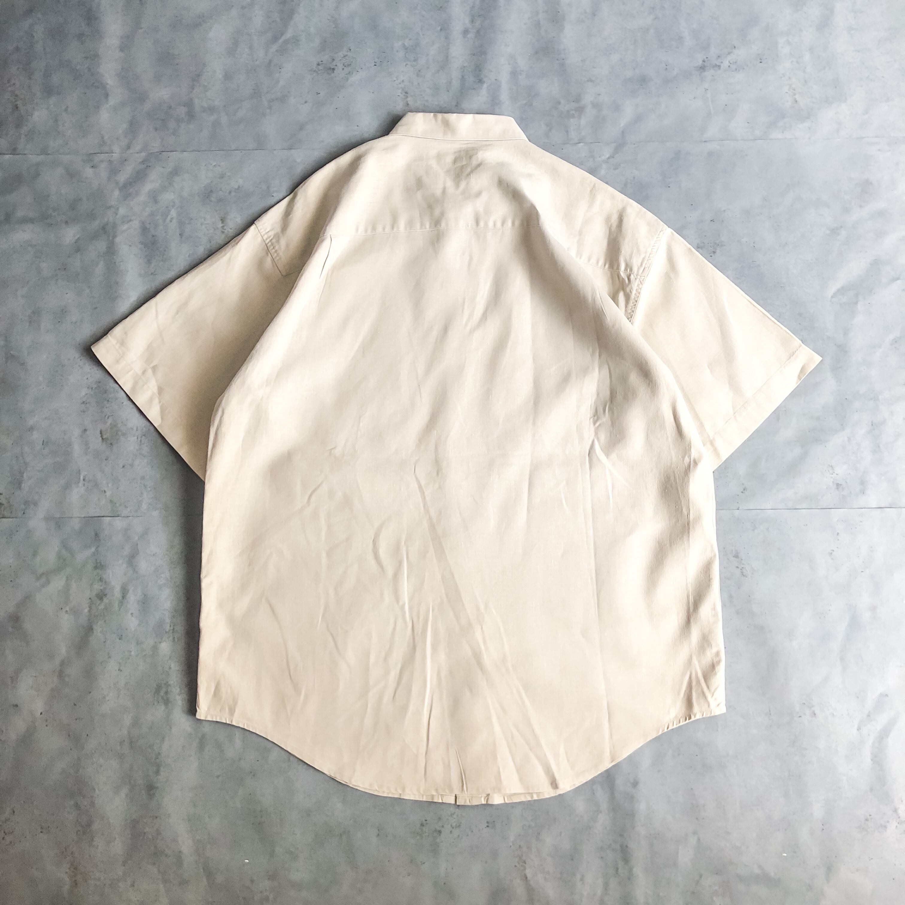 1990's ROBERT STOCK ecru color bigsize linen cotton s/s shirt