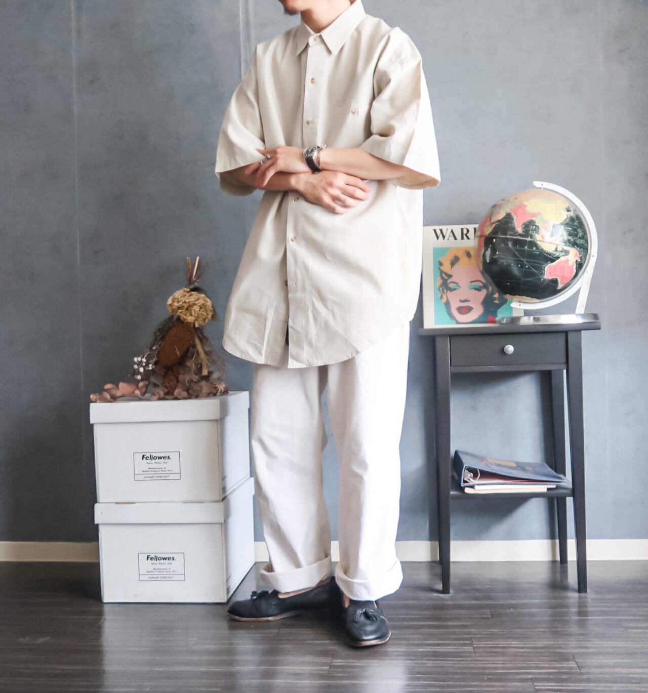 特徴 :ナチュラルな雰囲気の生成りカラーにビッグサイズがgoodな1990s頃のROBERT STOCKの半袖シャツ。
