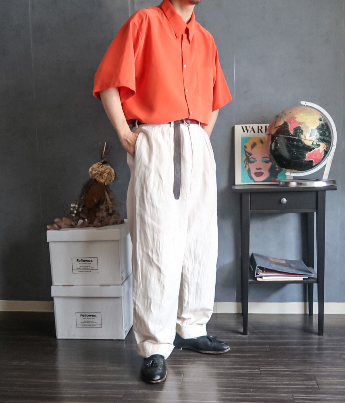ツータックで腰回りはゆったりで、裾に向かって緩やかにテーパードが効いているシルエット。