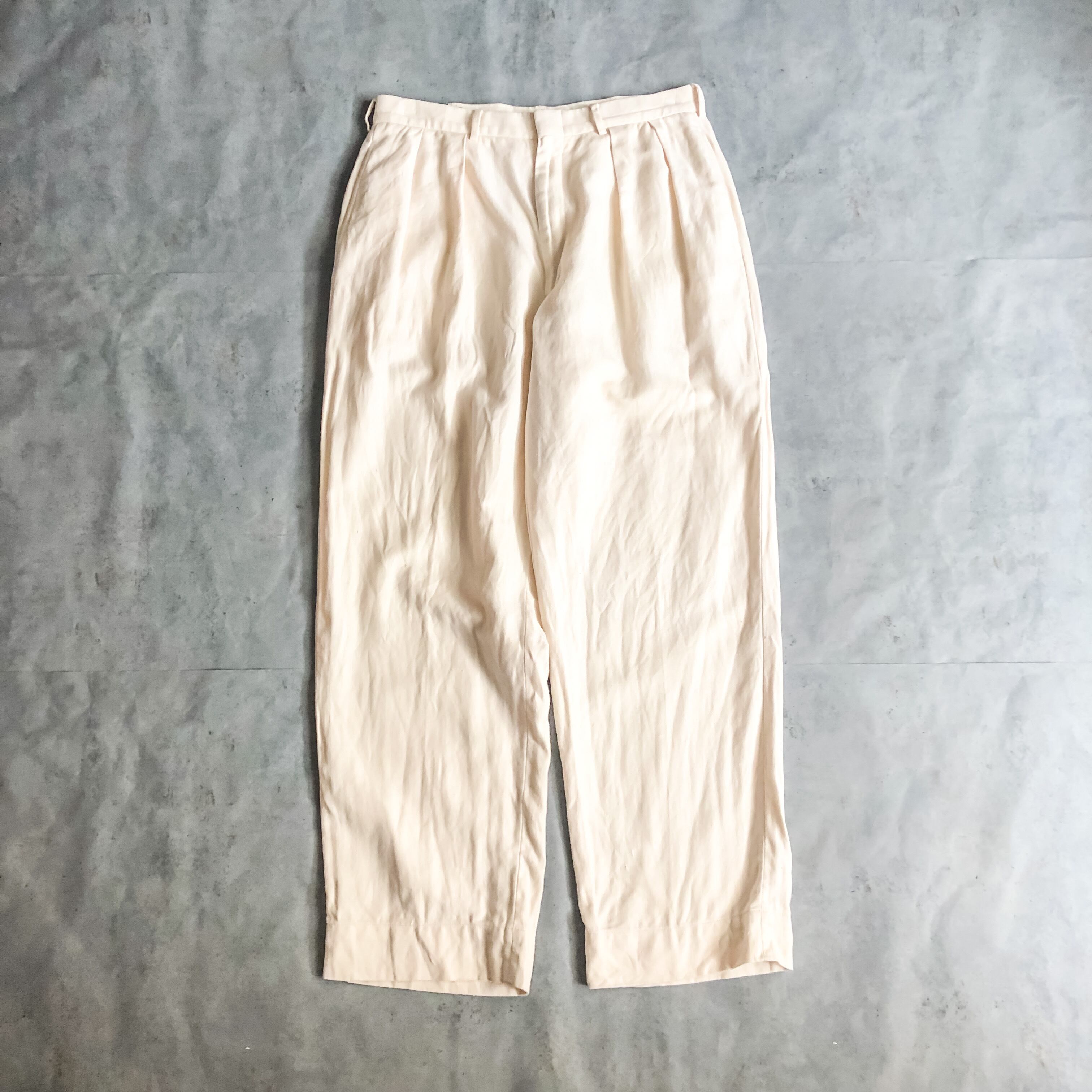 1990's Polo Ralph Lauren white two tuck linen×cotton slacks pants
