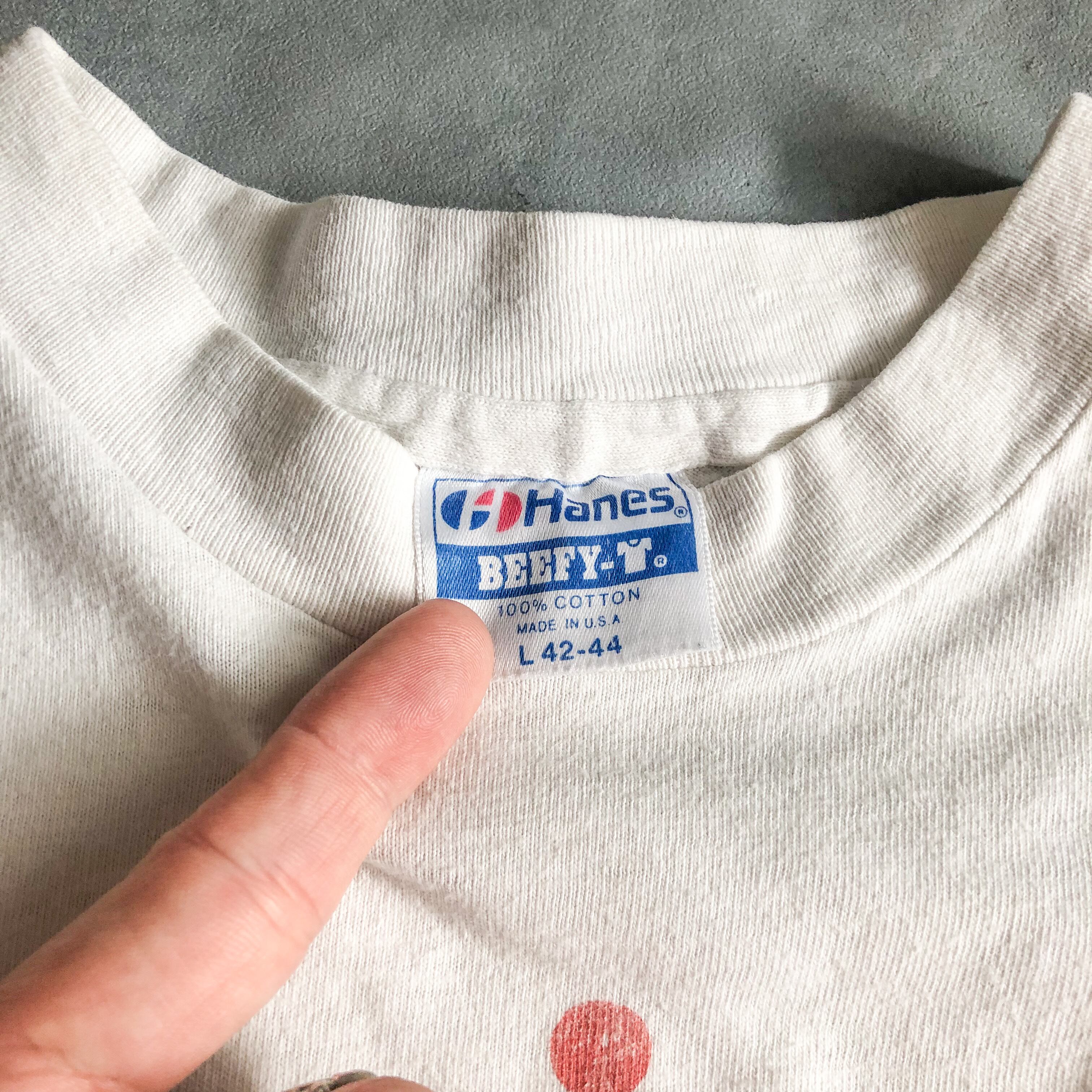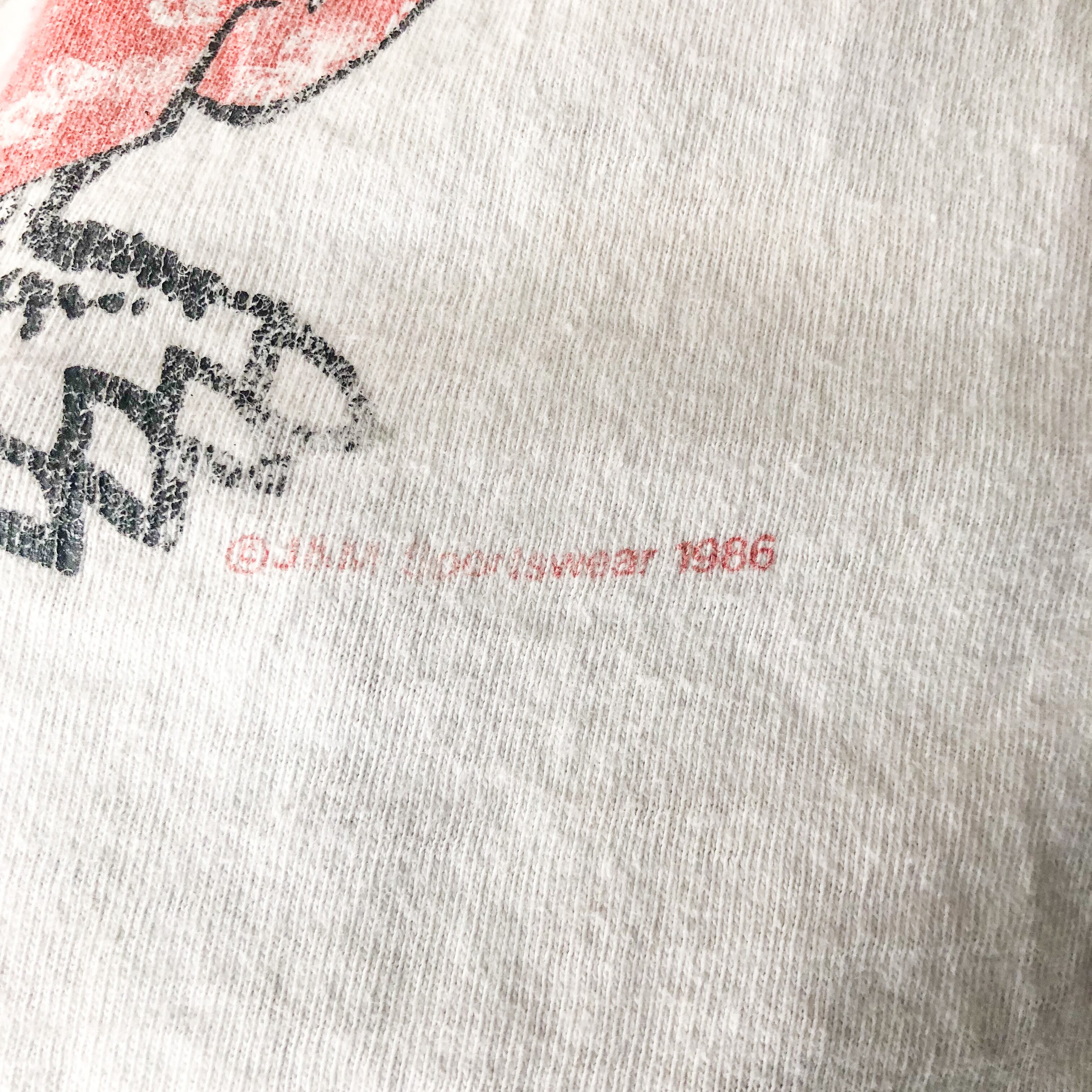 ヘインズボディーに袖、裾シングルステッチで、1986年のコピーライト。