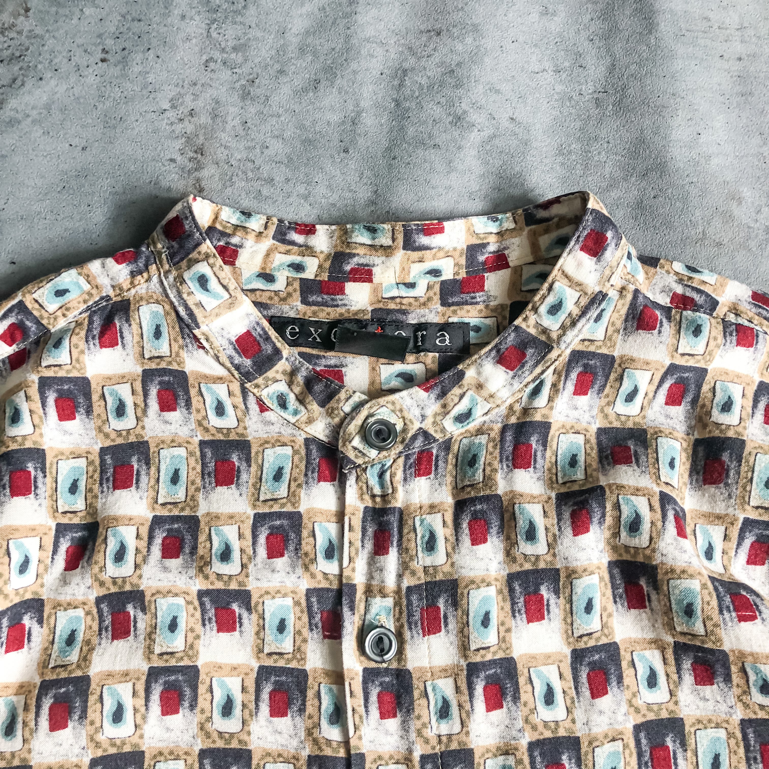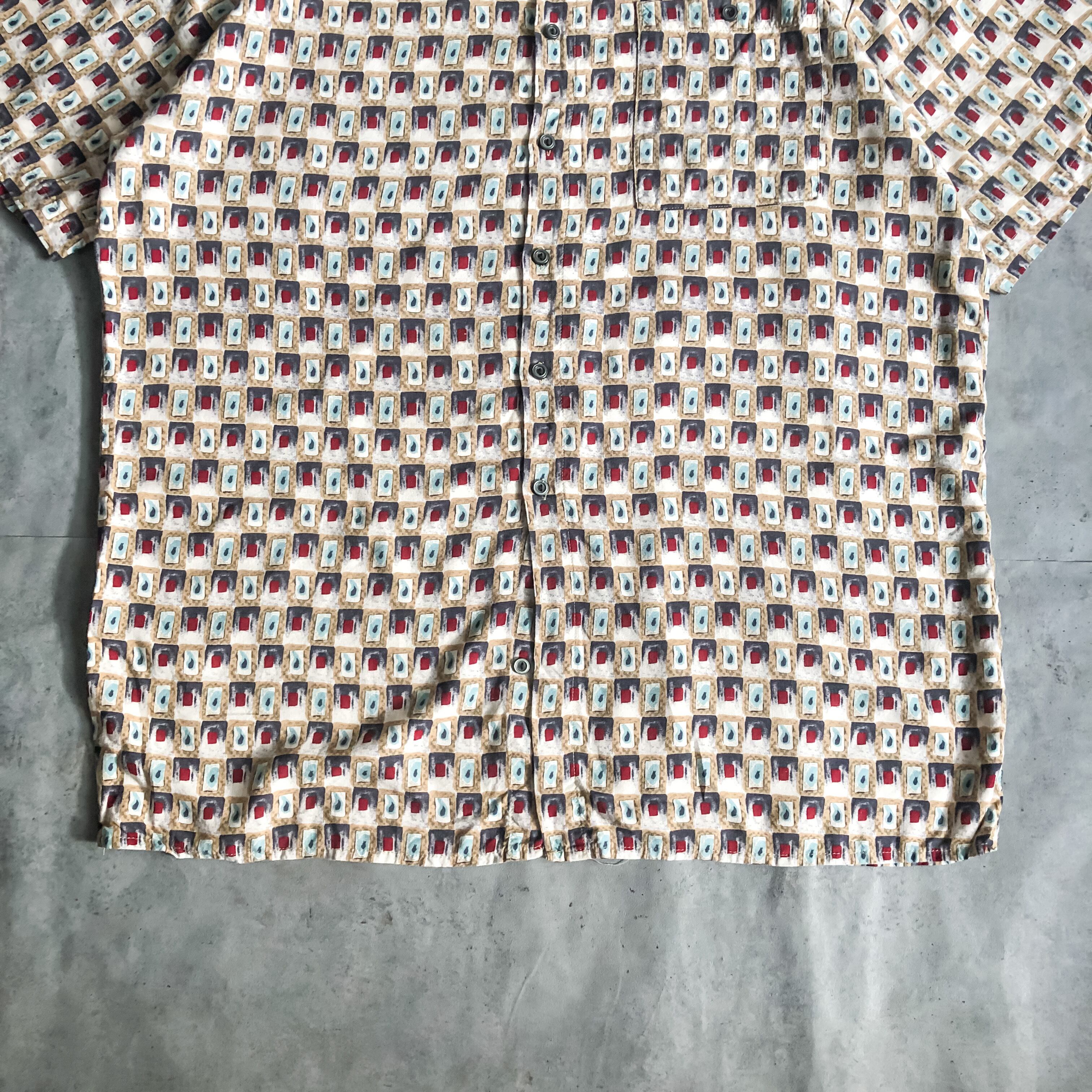 特徴 :1990's~頃のブロック状の独特なテキスタイルが面白い総柄シャツ。