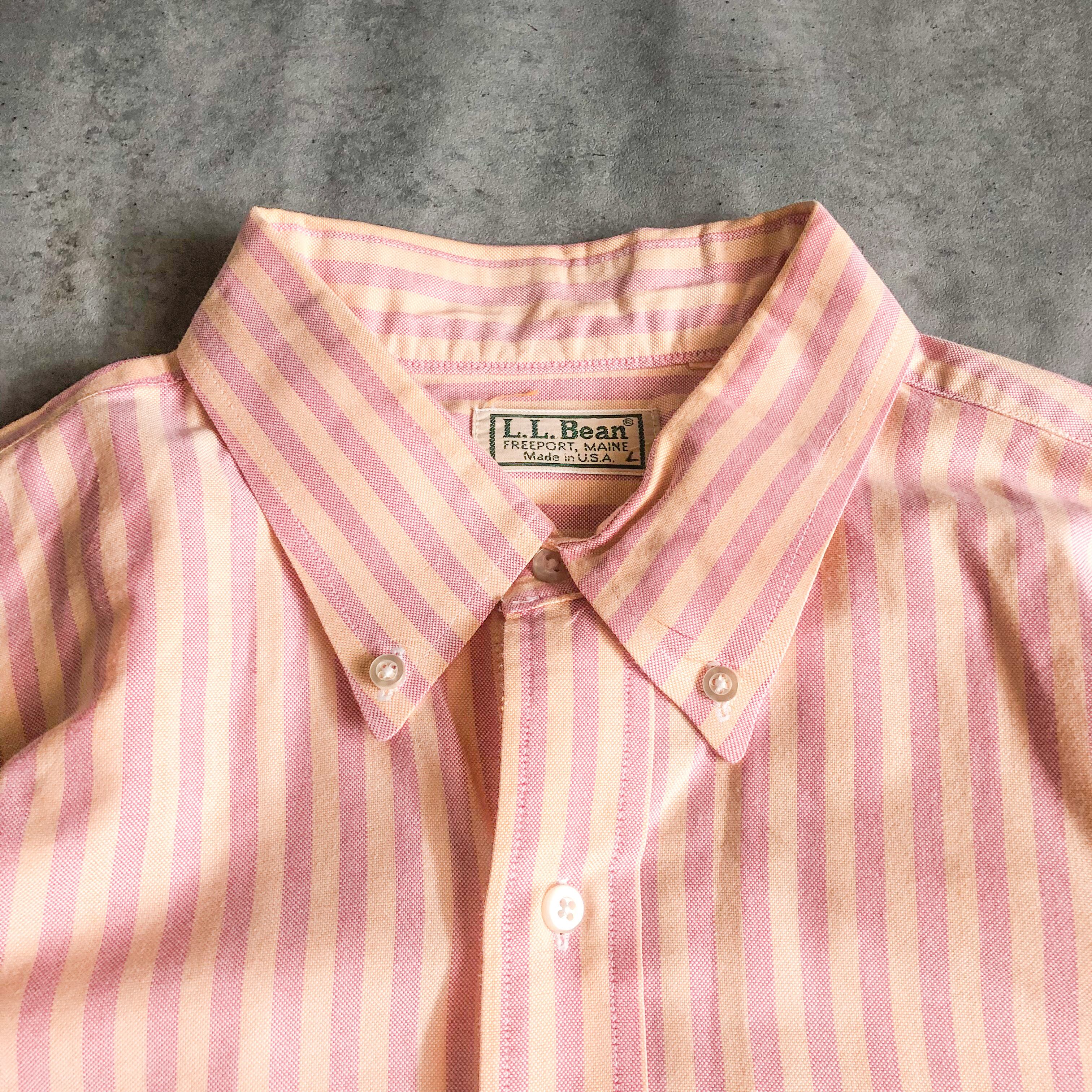 特徴 :ピンクカラー×ベージュの珍しい配色のがストライプ柄がグッドな1980's~頃のL.L.Beanのボタンダウンオクスフォードシャツ。