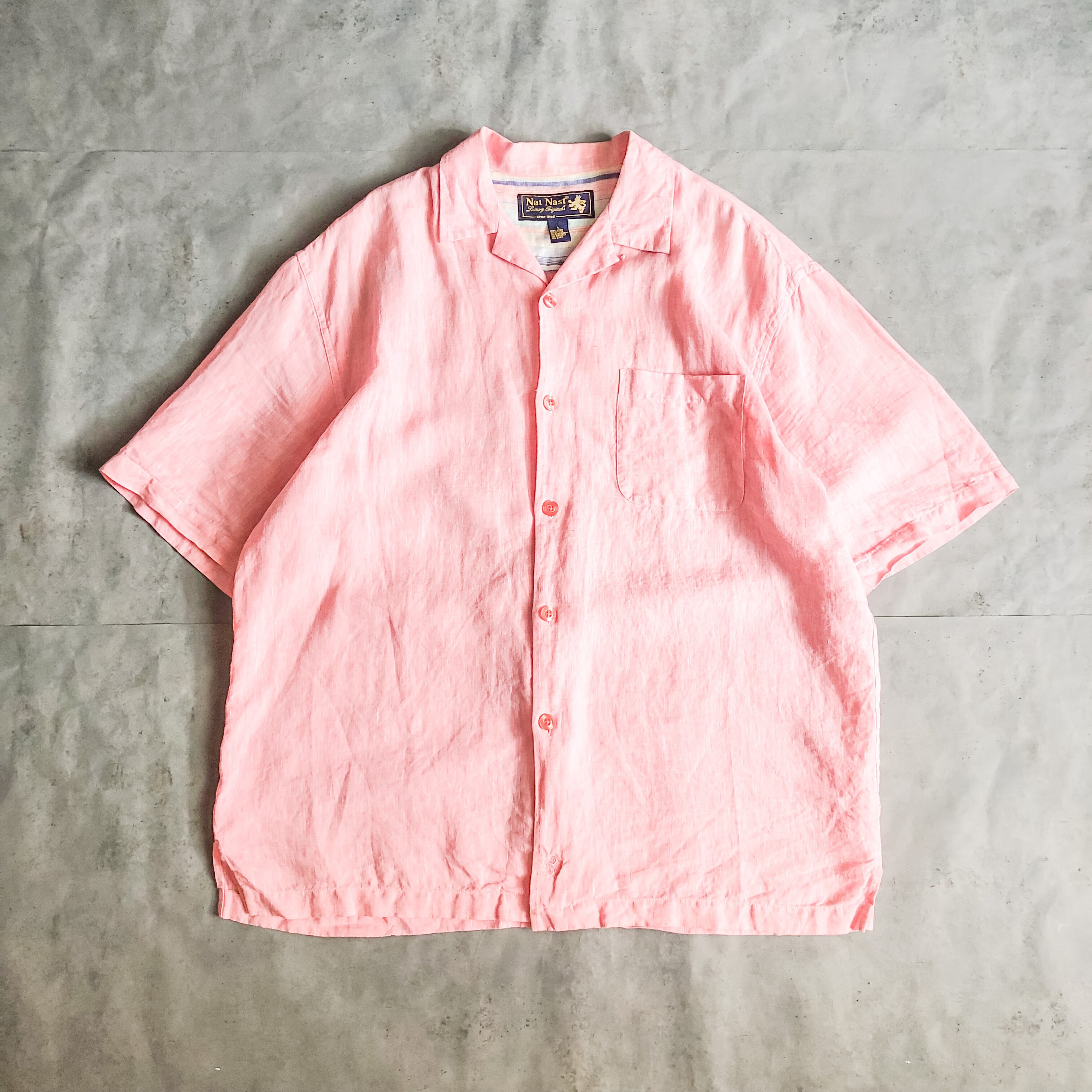 1990's~ Nat Nast pink open collar linen s/s shirt