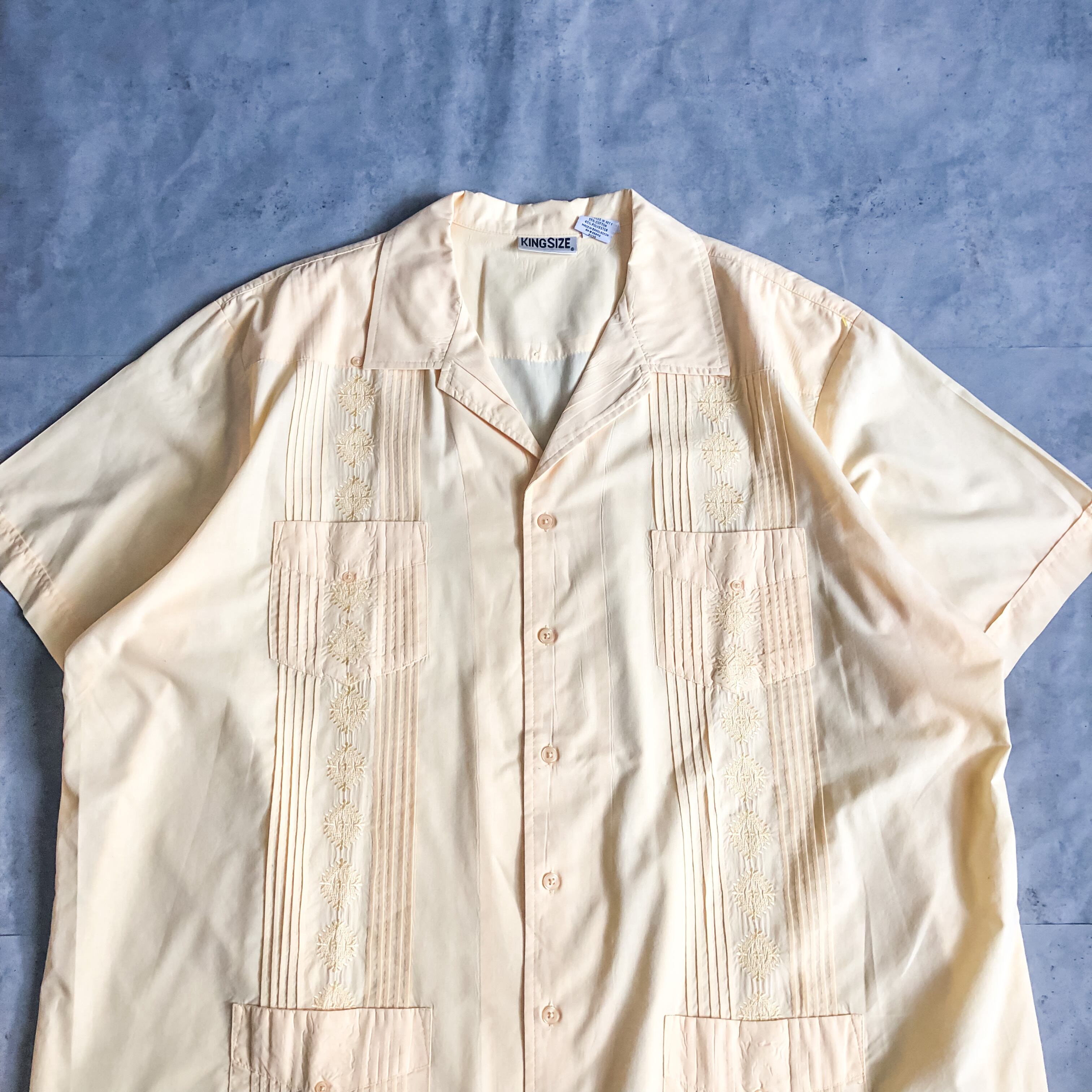 1990's "KING SIZE" bigsize embroidery cuba s/s shirt