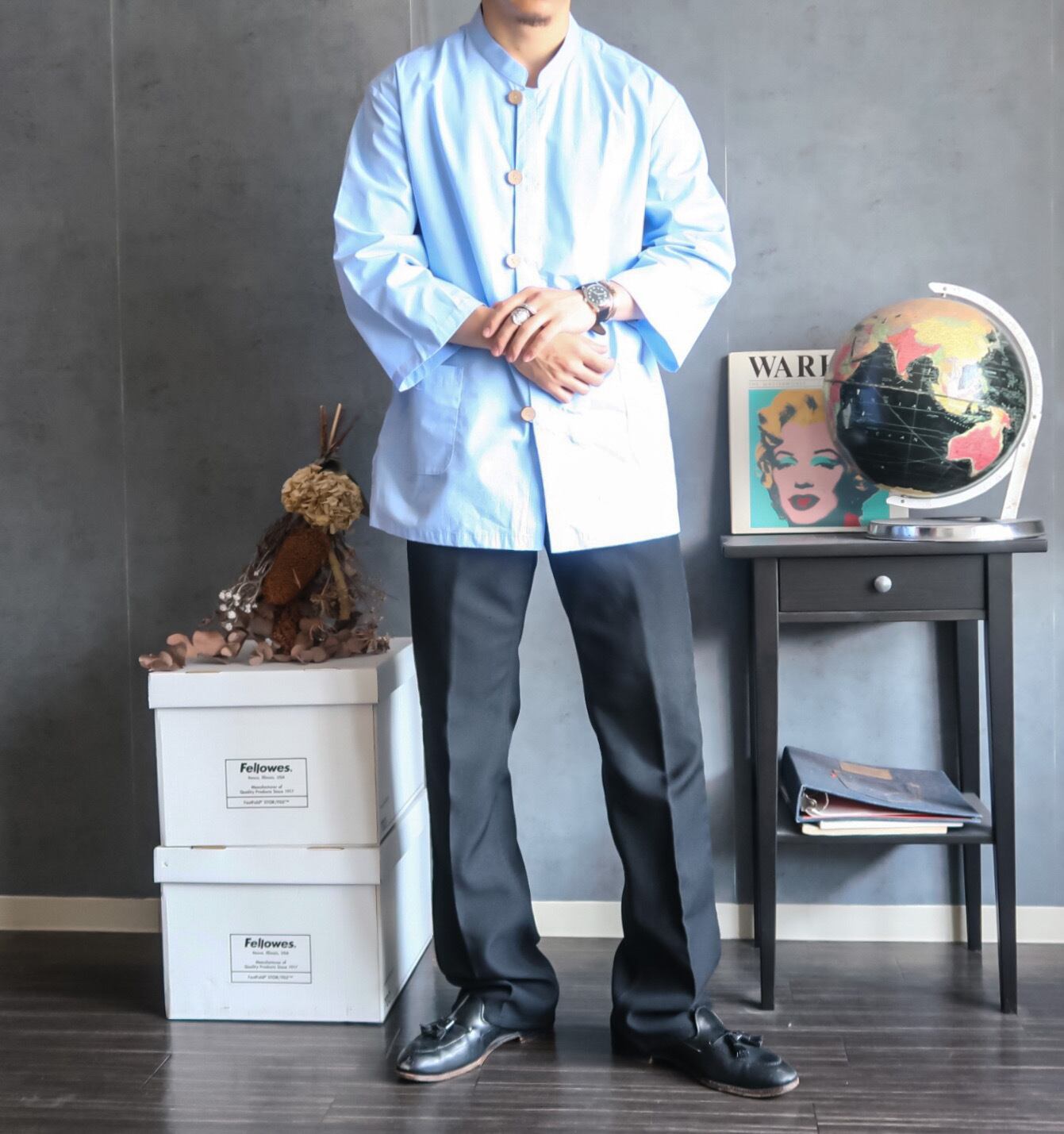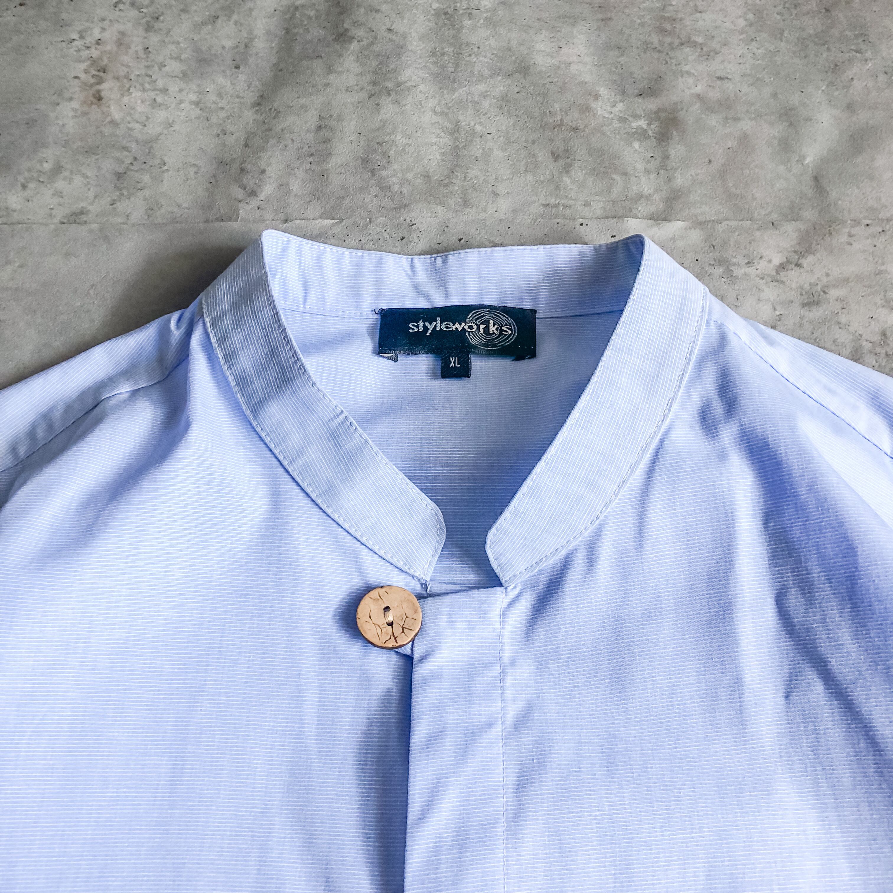 特徴 :2000's~頃の爽やかなライトブルーのスタンドカラーシャツ。