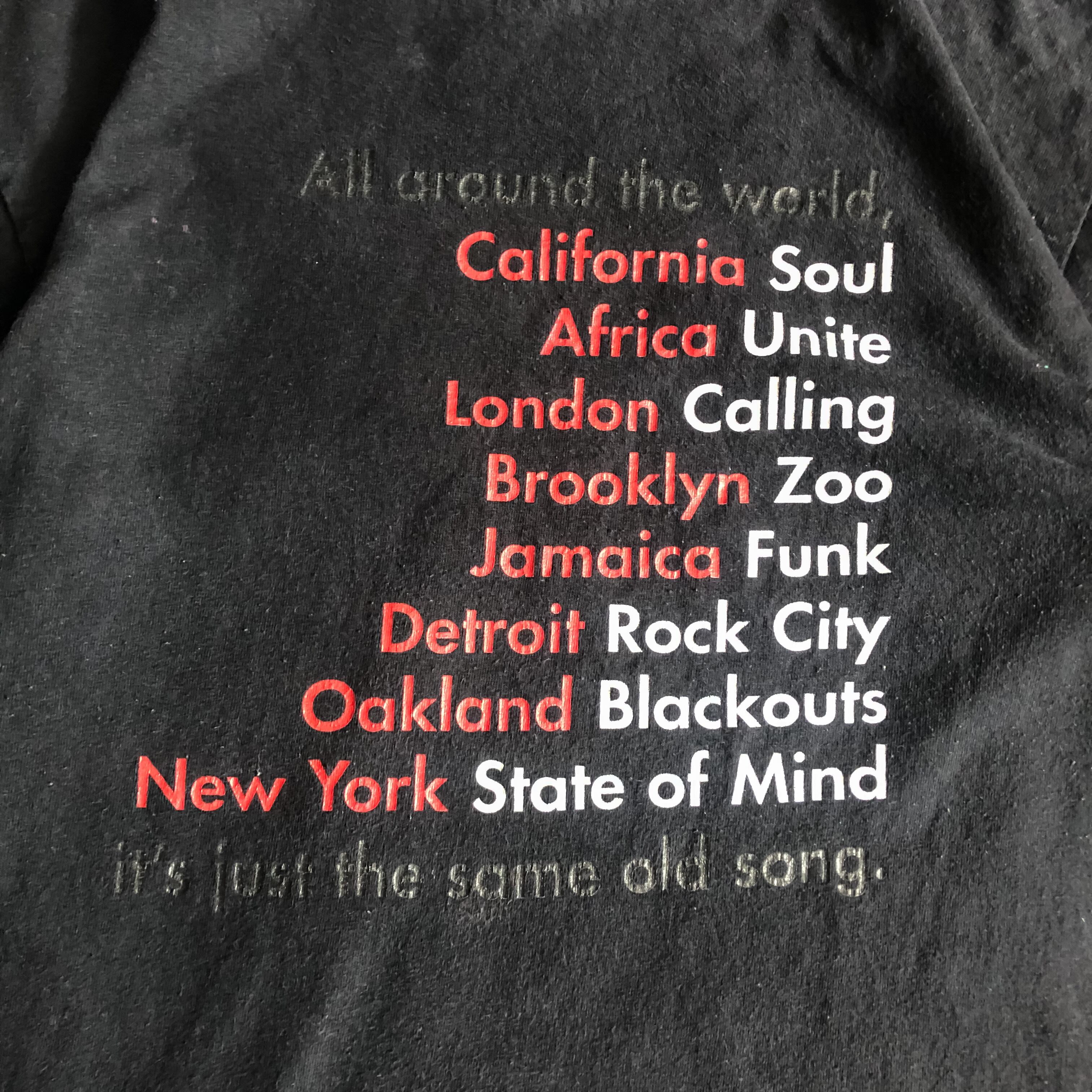 KISSやThe CLASHなど、曲名に都市の名前が入る曲がプリントされたクールな一枚です。