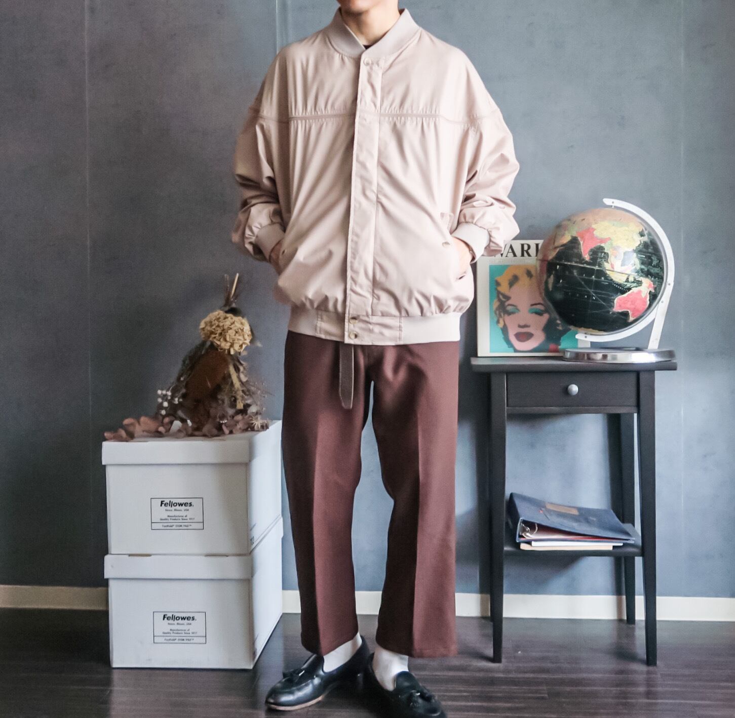 ライトベージュカラーにゆったりとシルエット。
