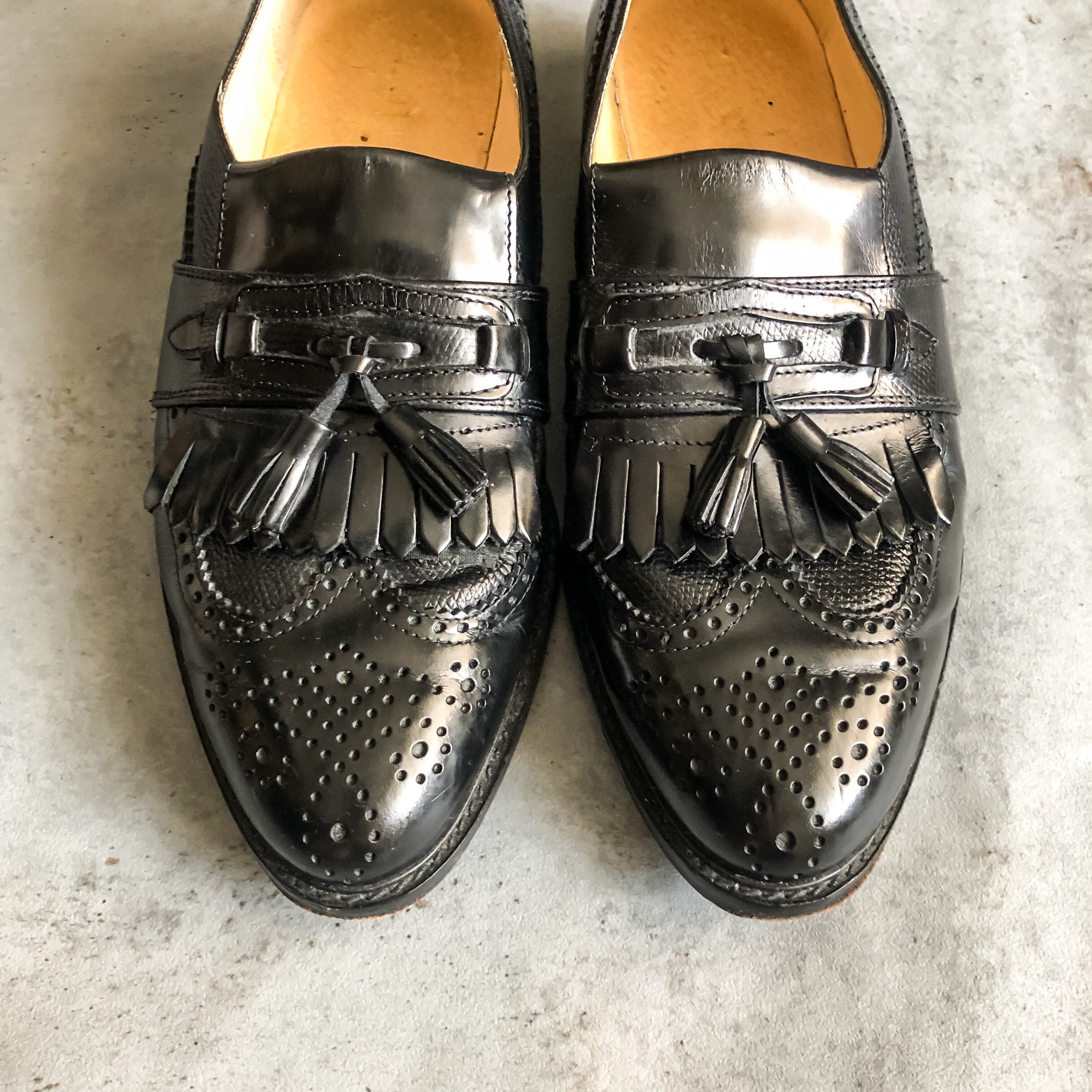 "PIERO CERVI" black leather quilt tassel wingchip loafer made in Italy