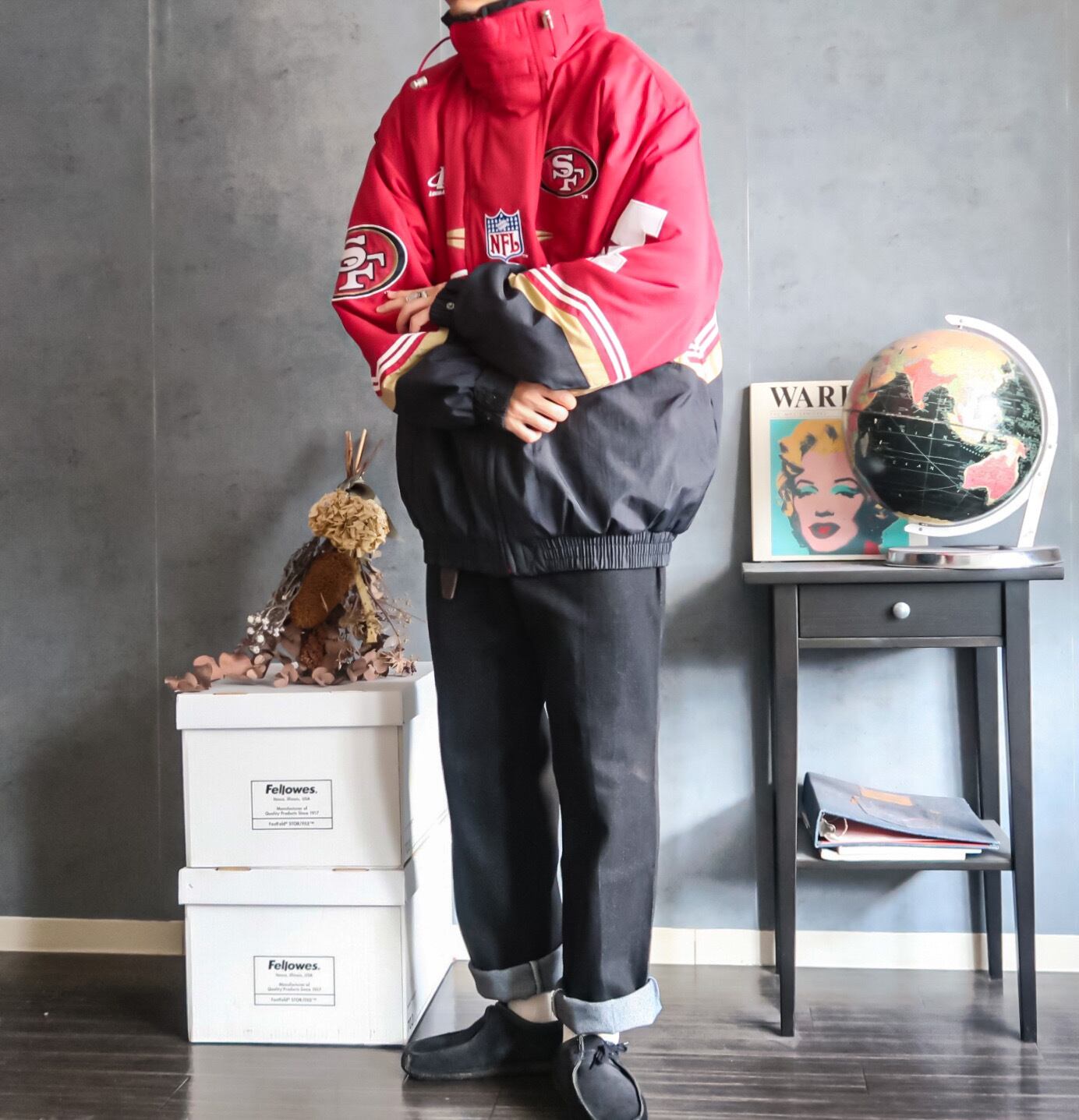 特徴 :1990's頃のLOGO ATHLETIC社製のNFL SANFRANCISCO 49ERSの中綿ナイロンジャケット。