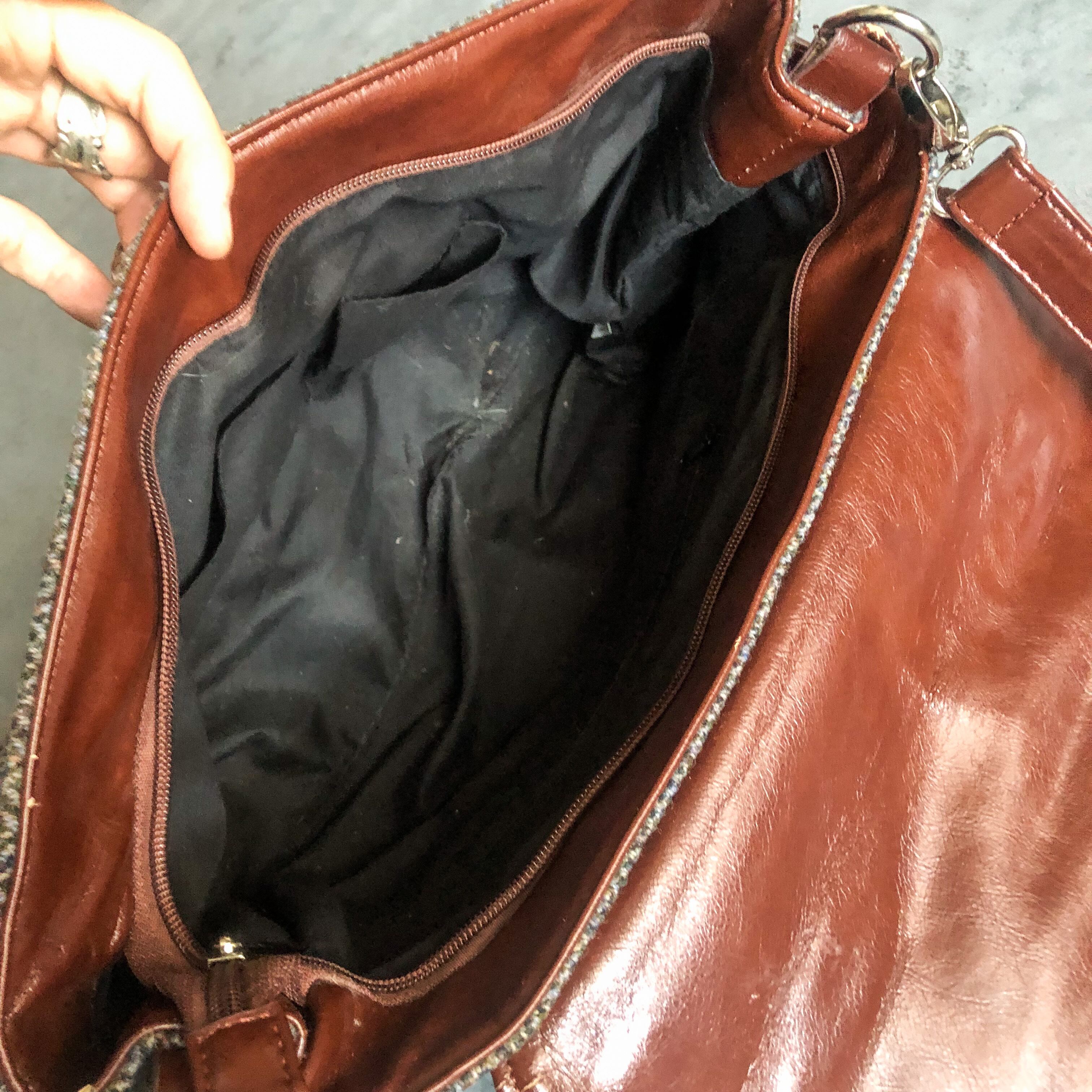 そのクオリティの高いツイードとブラウンのレザーのコンビネーションが素晴らしいバッグです。