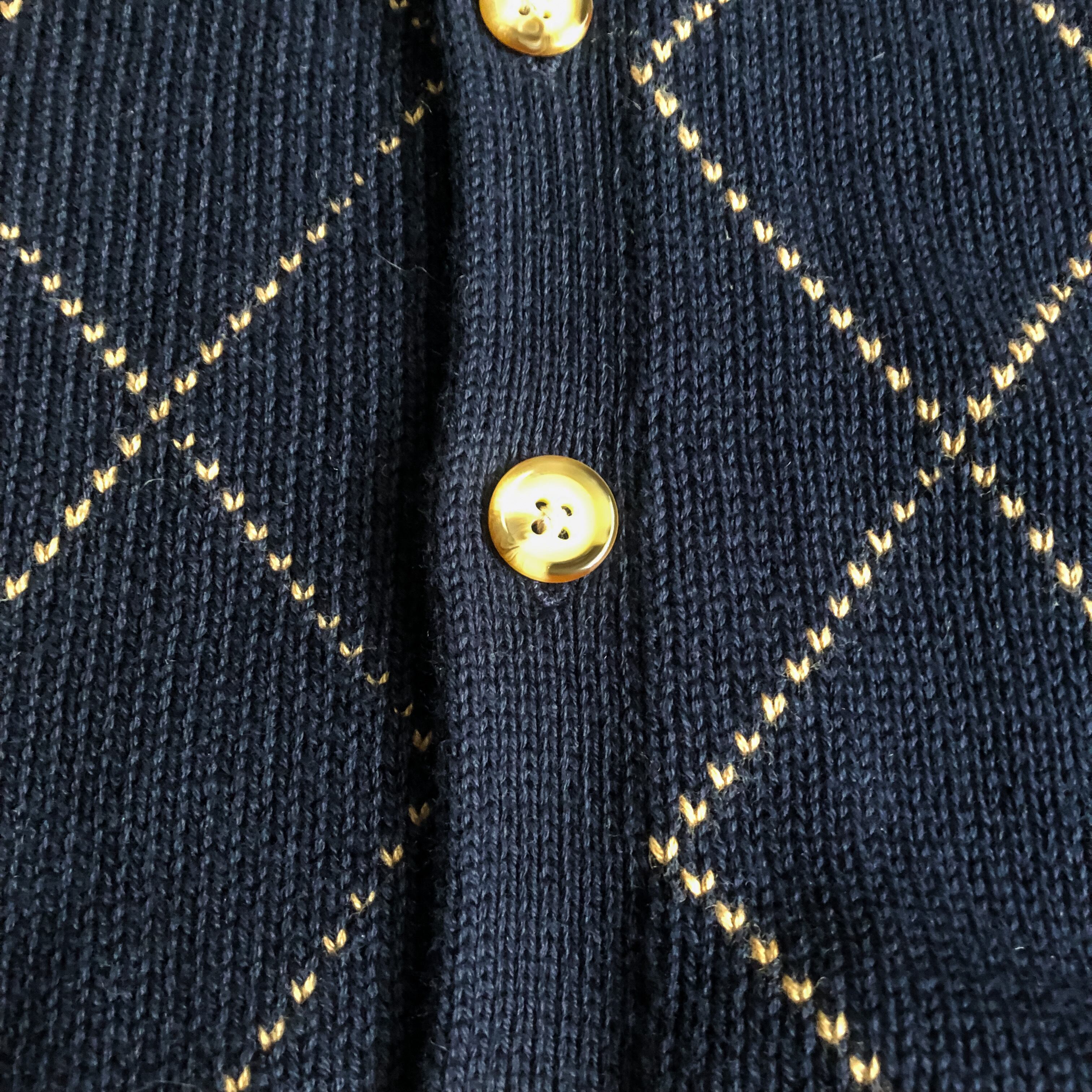 ネイビーボディーにフロントにはアーガイル柄が入るグッドなデザインの一着。