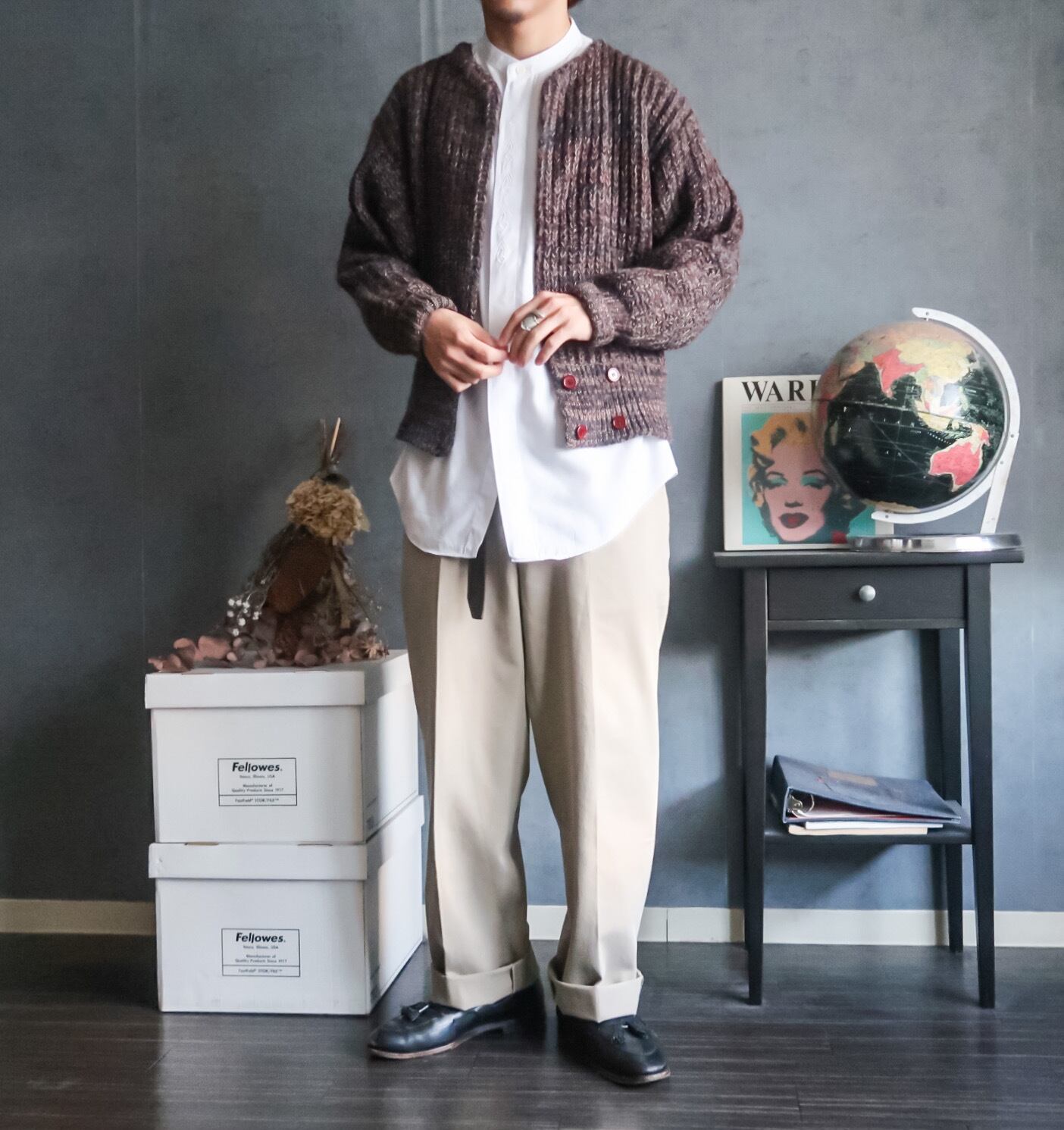 特徴 :1980's~頃のドルマンスリーブ調のニットカーディガン。