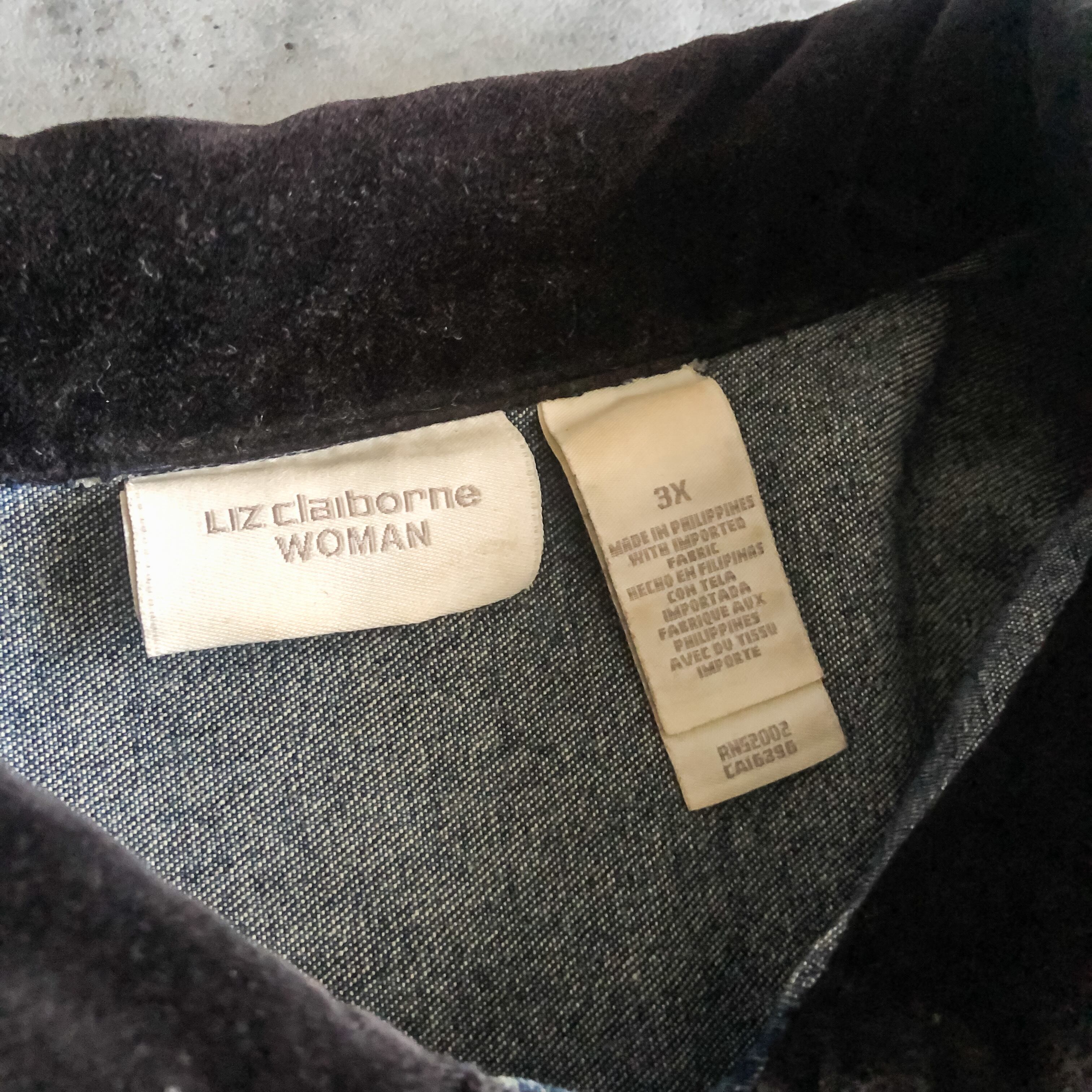 1990's~ Liz claiborne velour collar pleats design denim jacket