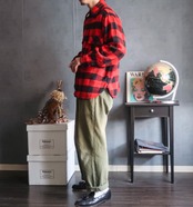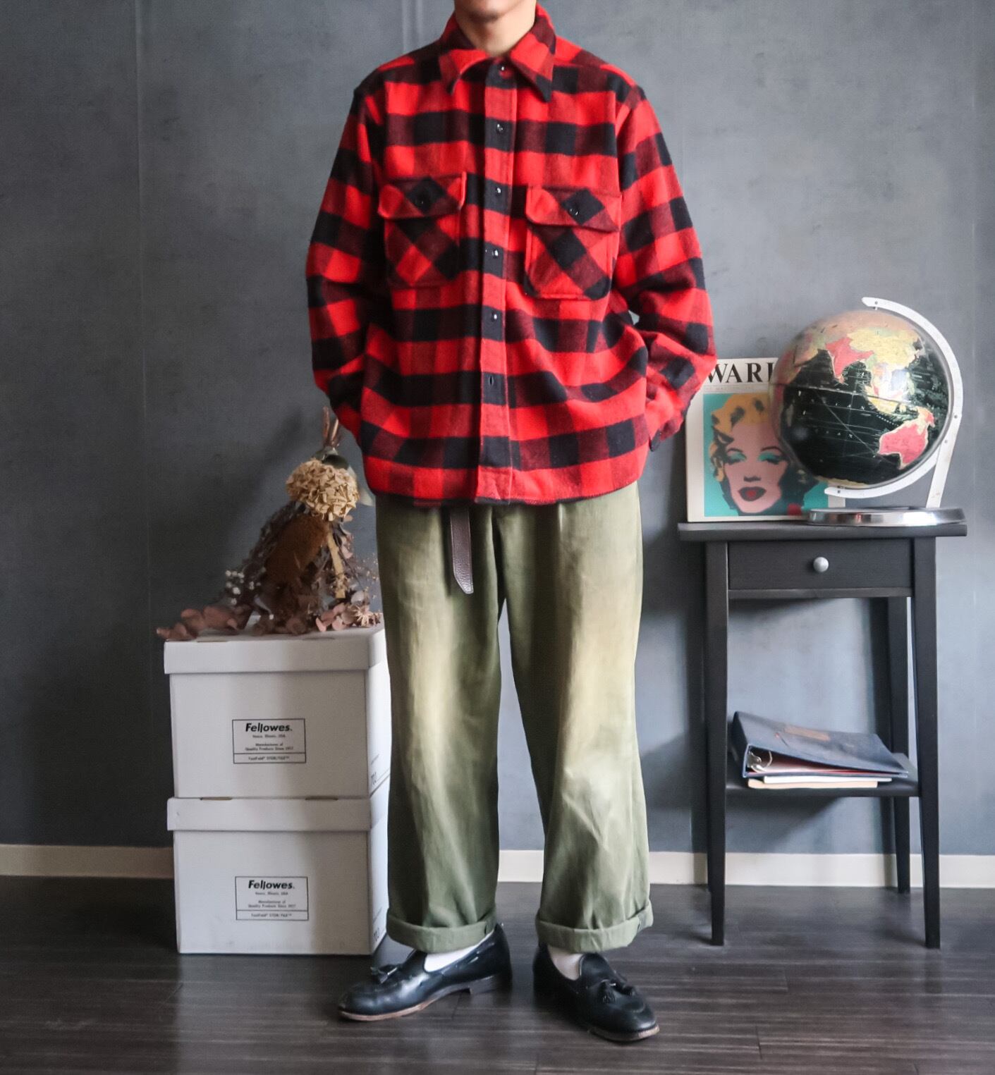 特徴 :レッド×ブラックのバッファローチェックがクールなヴィンテージウールシャツ。