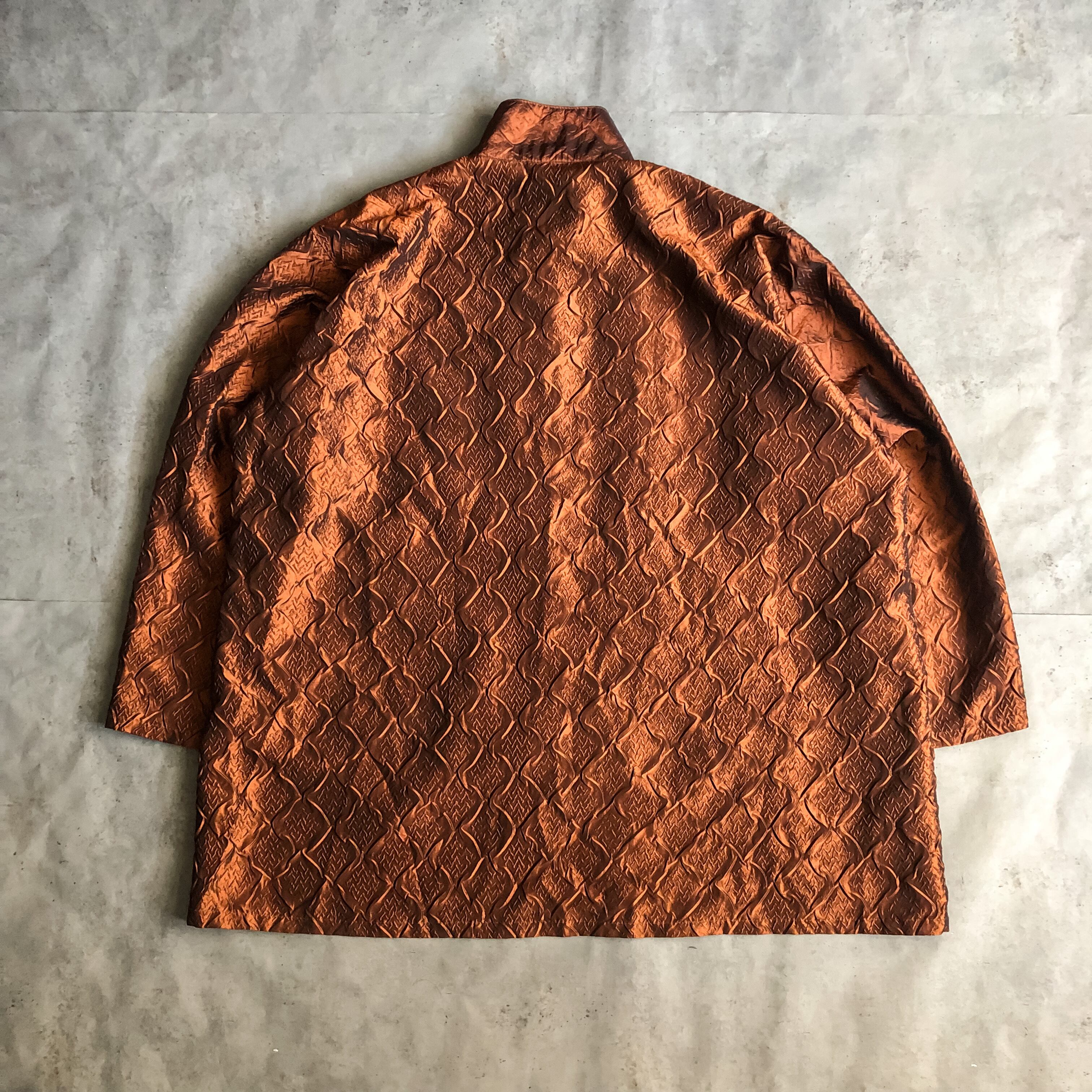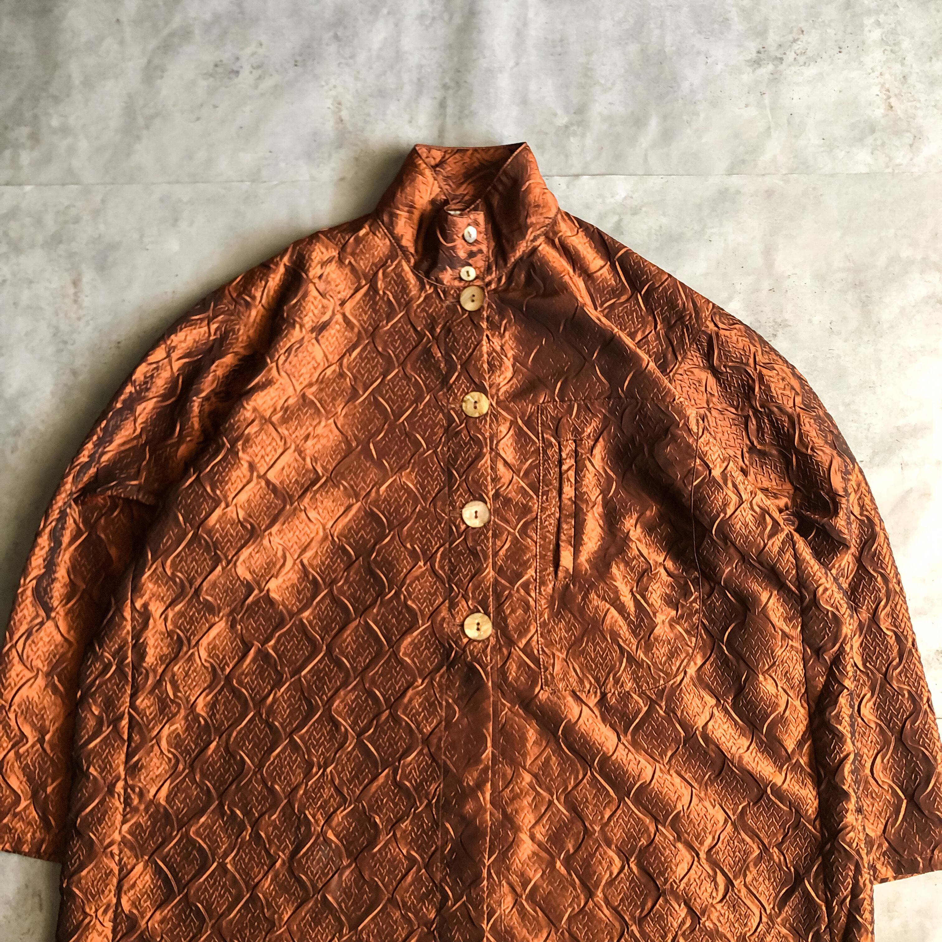 少し光沢感のある独特なブラウン系のカラーリングに、くしゅくしゅとした加工が施された珍しい総柄のデザイン。