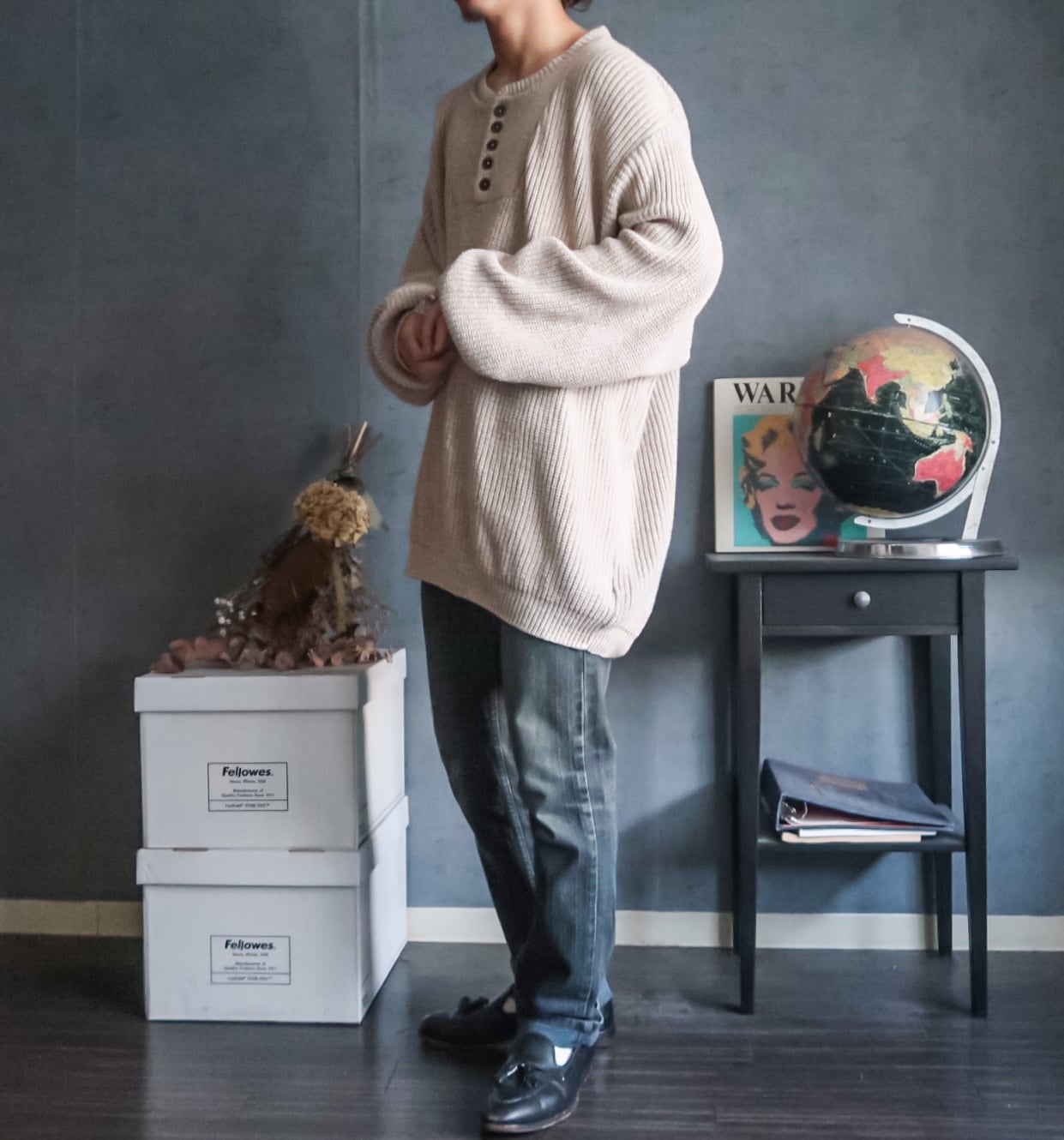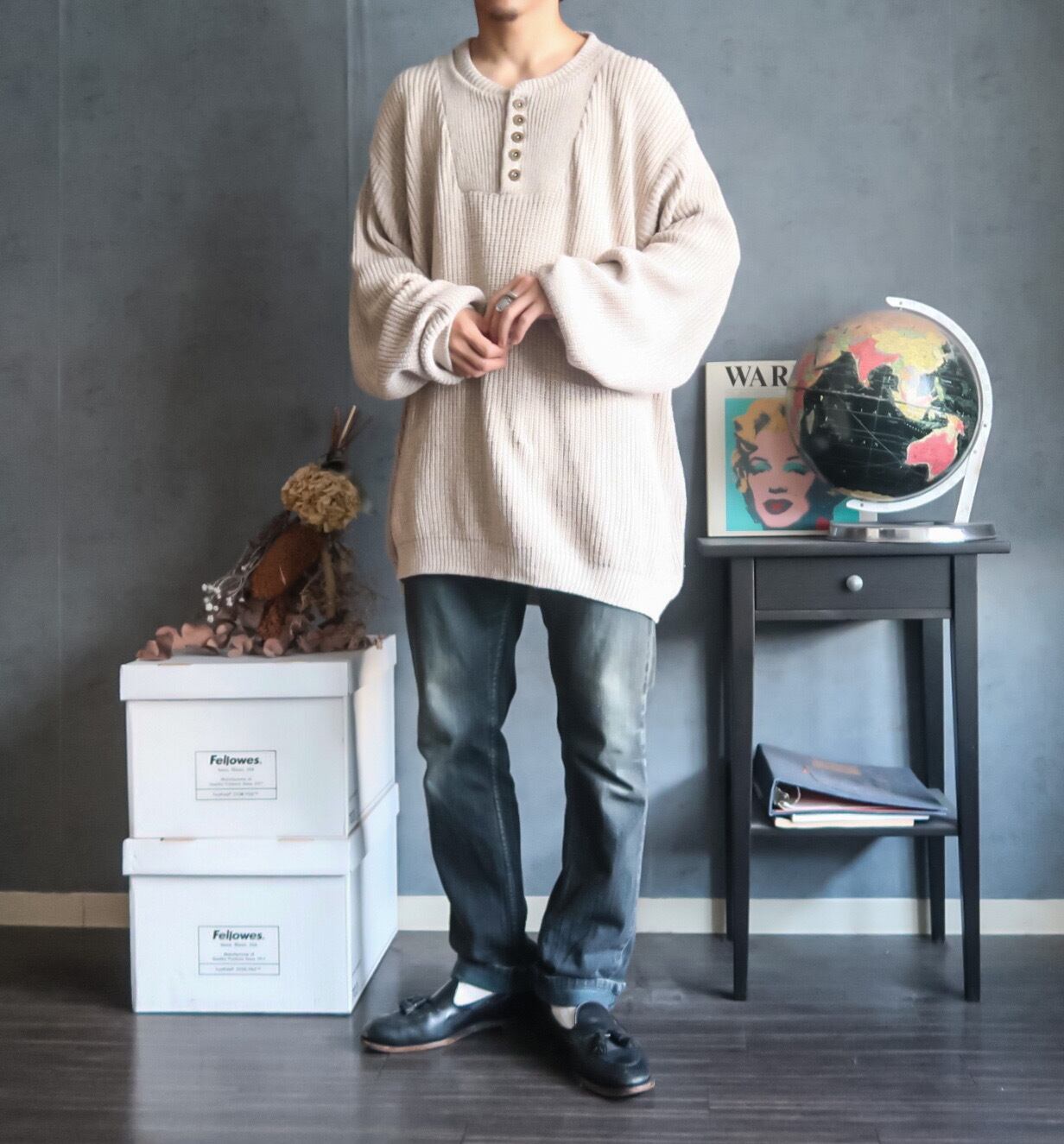 古着のセーターで意外に見かけないヘンリーネックデザイン。