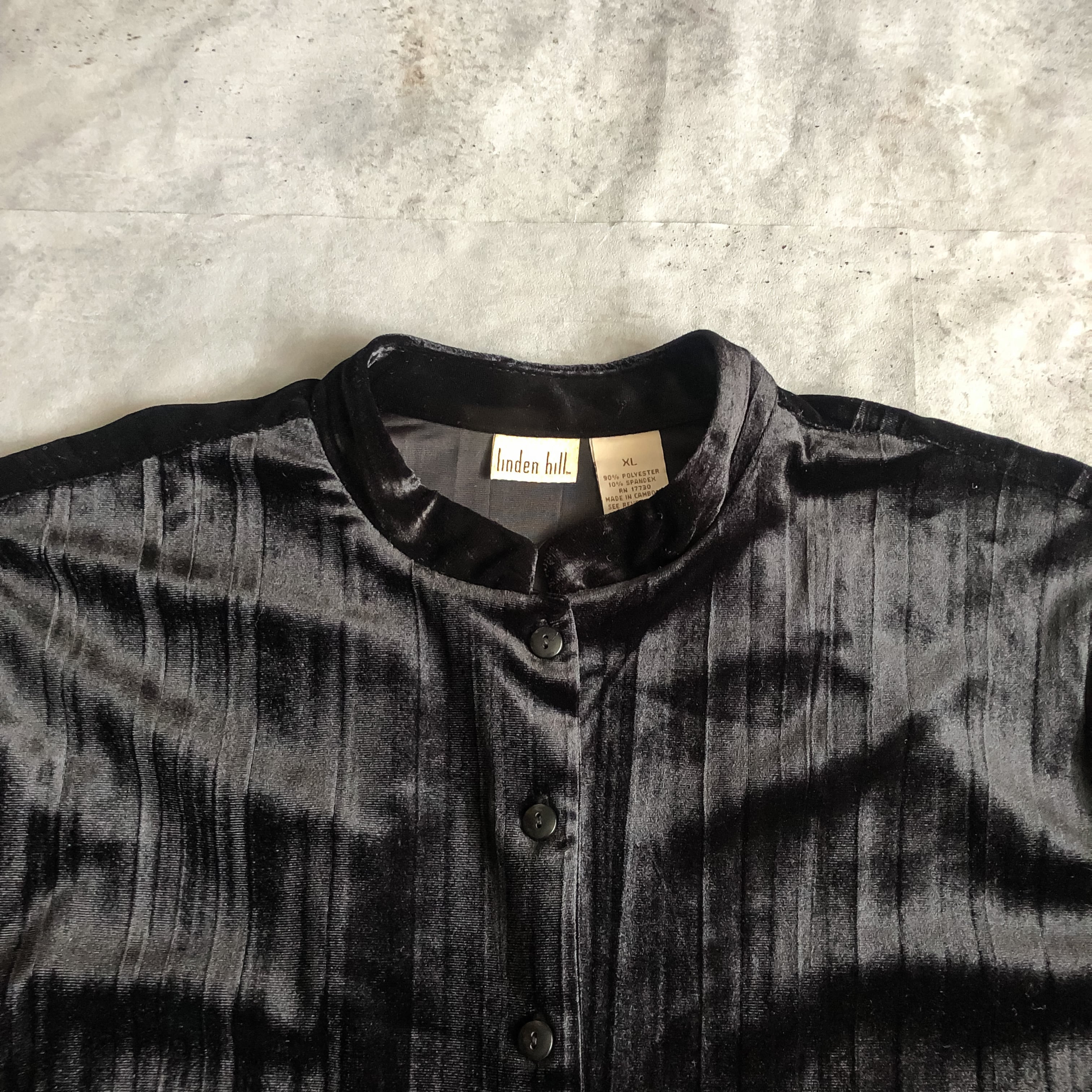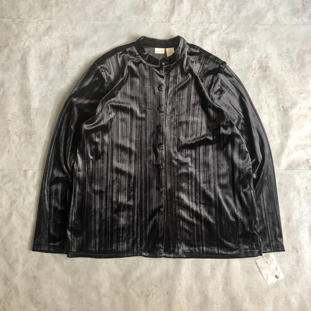 Dead stock! 1990's black stripe pattern stand collar velour shirt