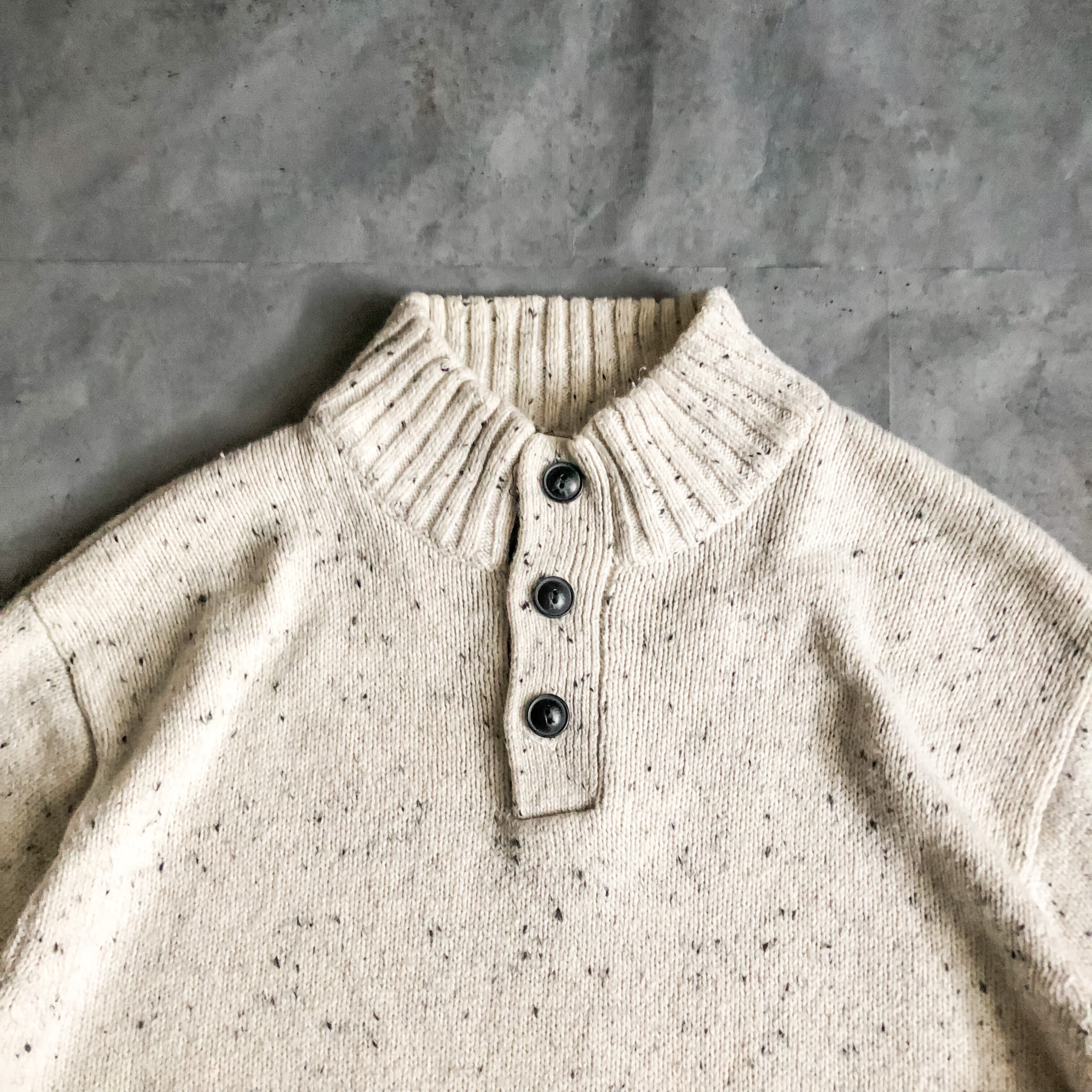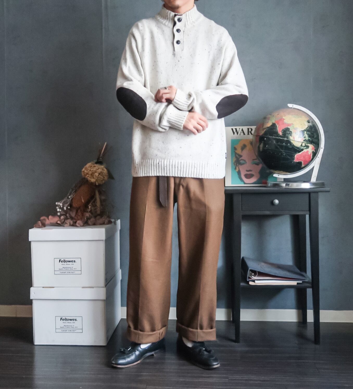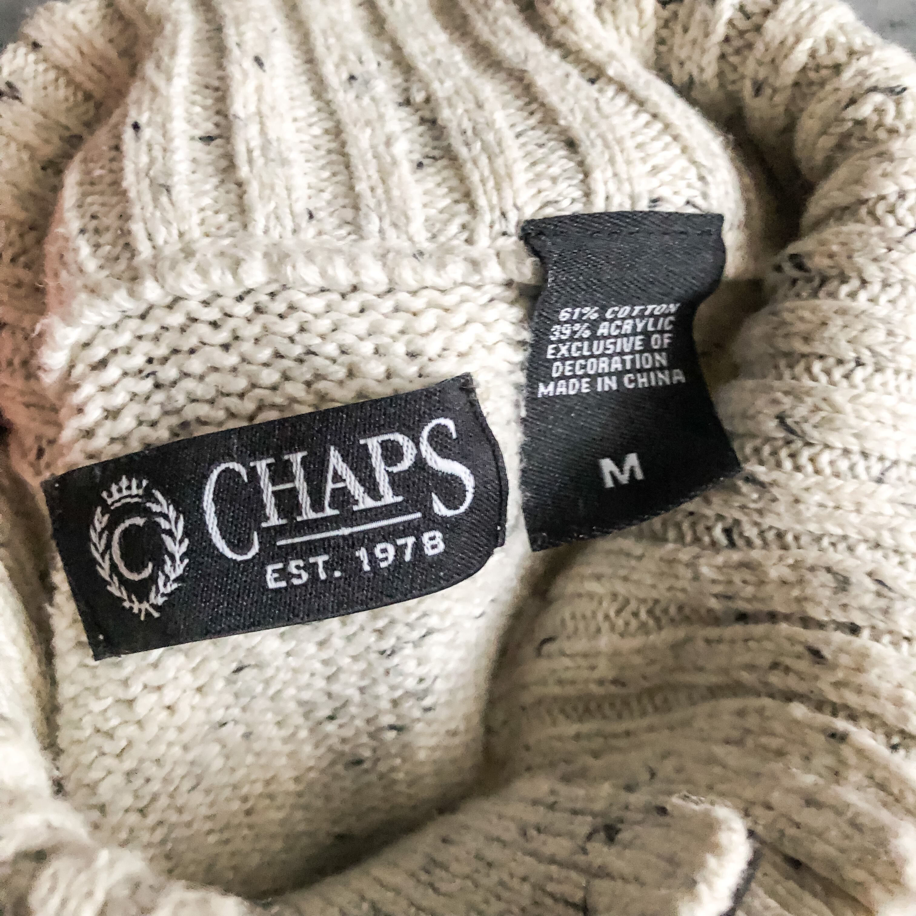 2000's~ Ralph Lauren "CHAPS" cookie&cream highneck cotton sweater with elbow patch