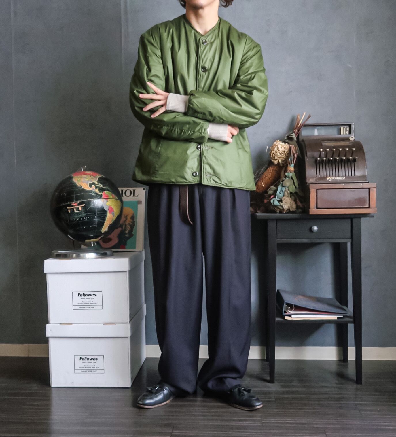 分厚過ぎない適度なボリューム感の中綿の作りですので、アウター感覚でサラッと取り入れて頂けます。