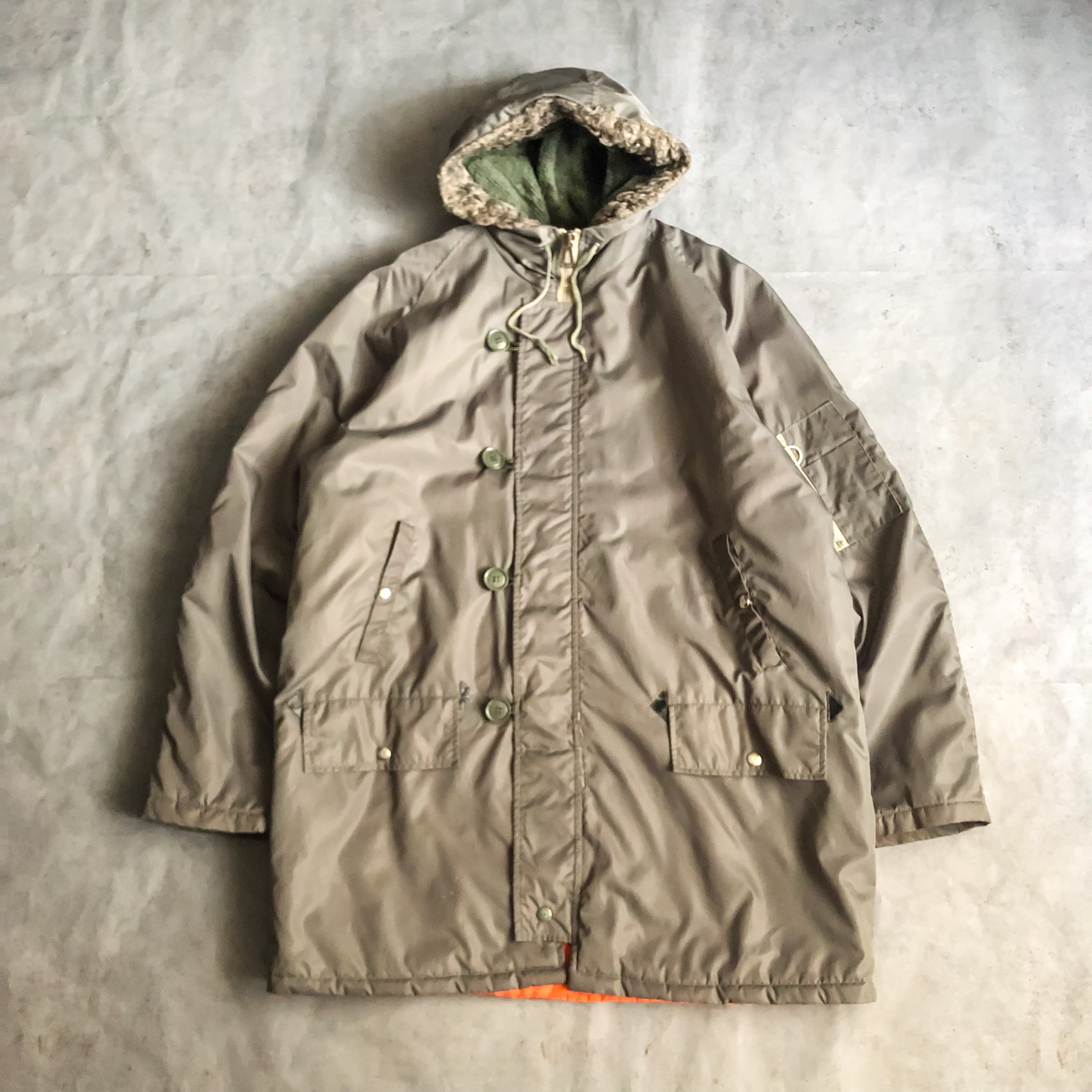 u.s.air force(アメリカ空軍)のフライトジャケットとして、摂氏マイナス10~マイナス30度のheavy zoneと云われる状況下の中で着用されていたN-3Bをモデルに作られたであろう一着。