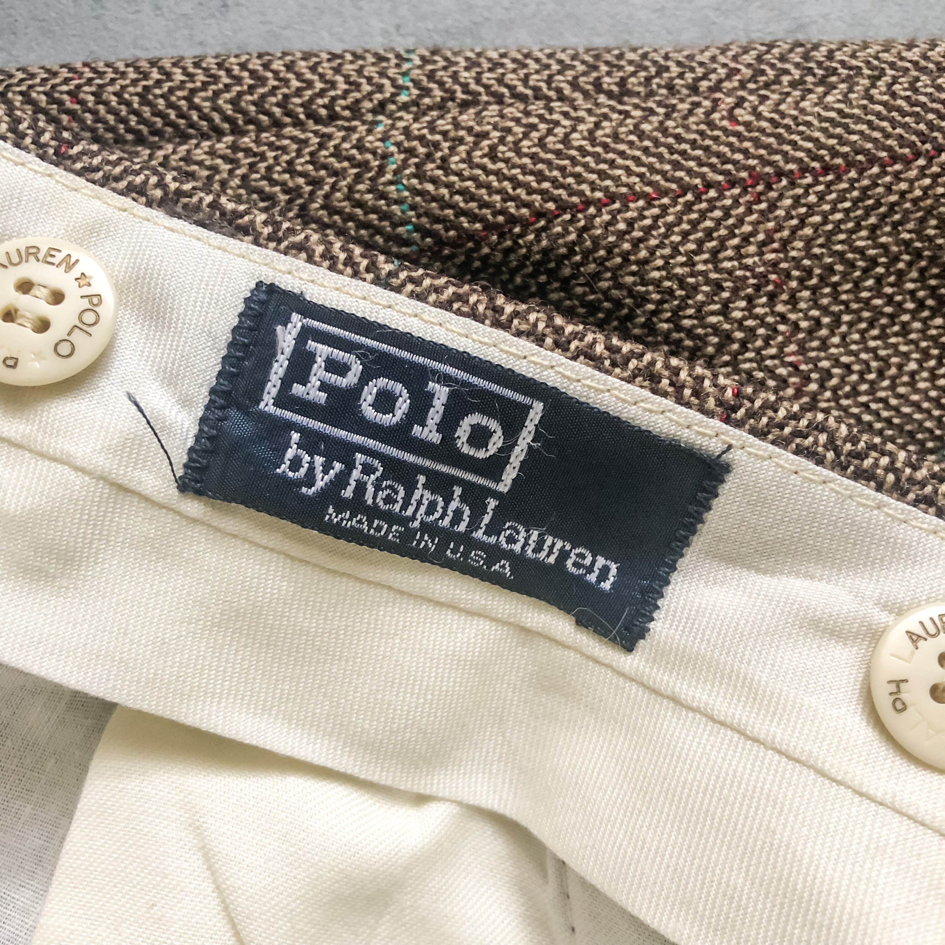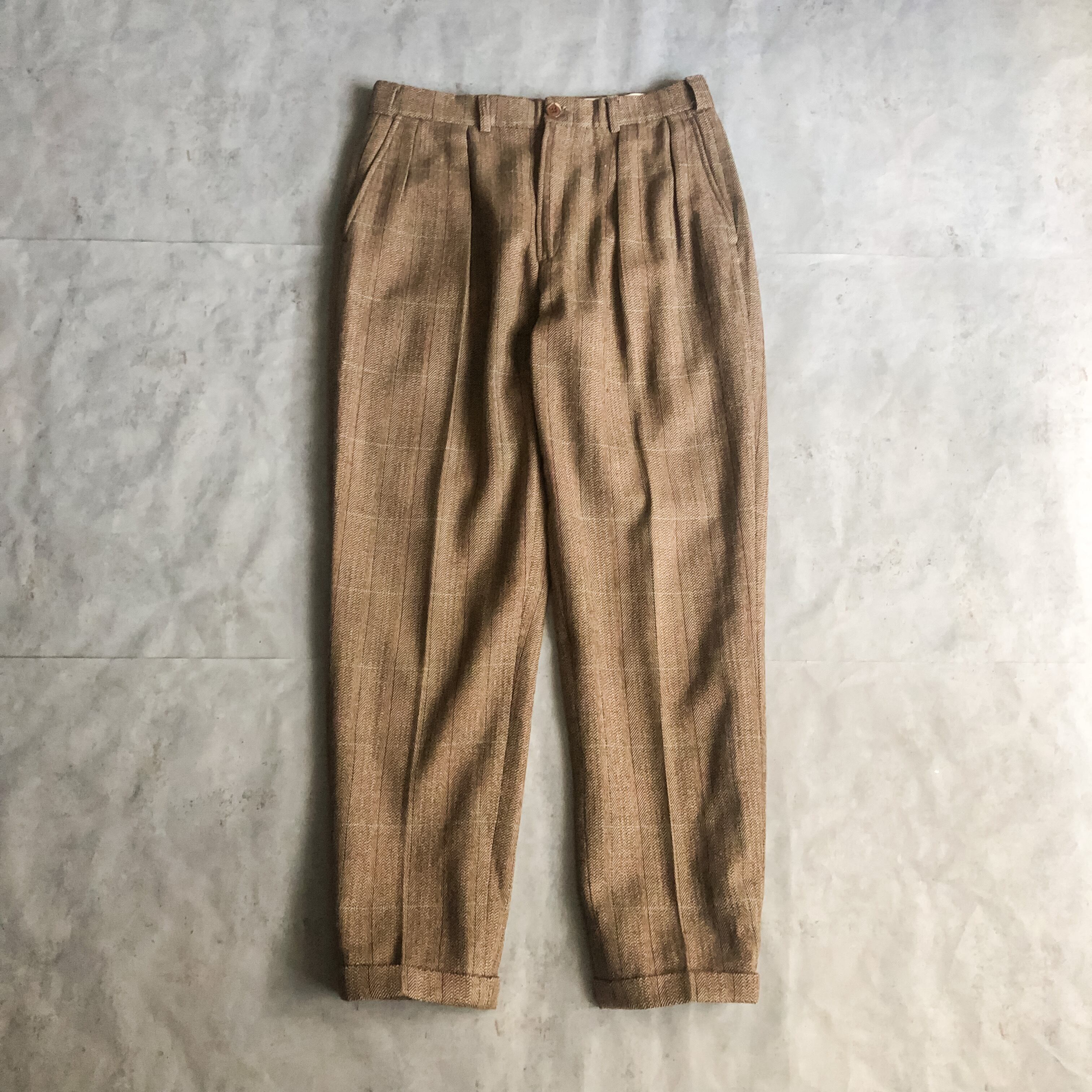 Vintage 1980's Polo Ralph Lauren herringbone×plaid pattern two tuck wool slacks pants