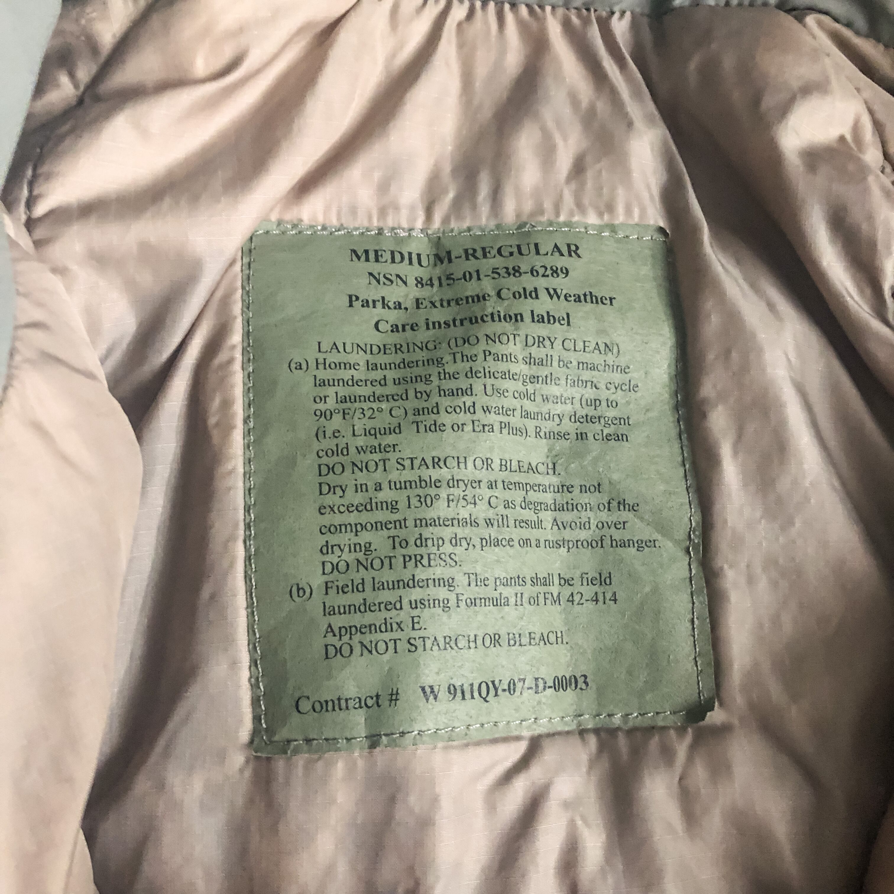 様々な天候、気温に応じて複数のレイヤードパターンレベルで構成されているECWCSですが、こちらはその中でも最高のレベル7に属しており、極寒冷地では規格のレイヤードにより-51,1度の気温にも対応できるように開発された最終防寒アウターです。