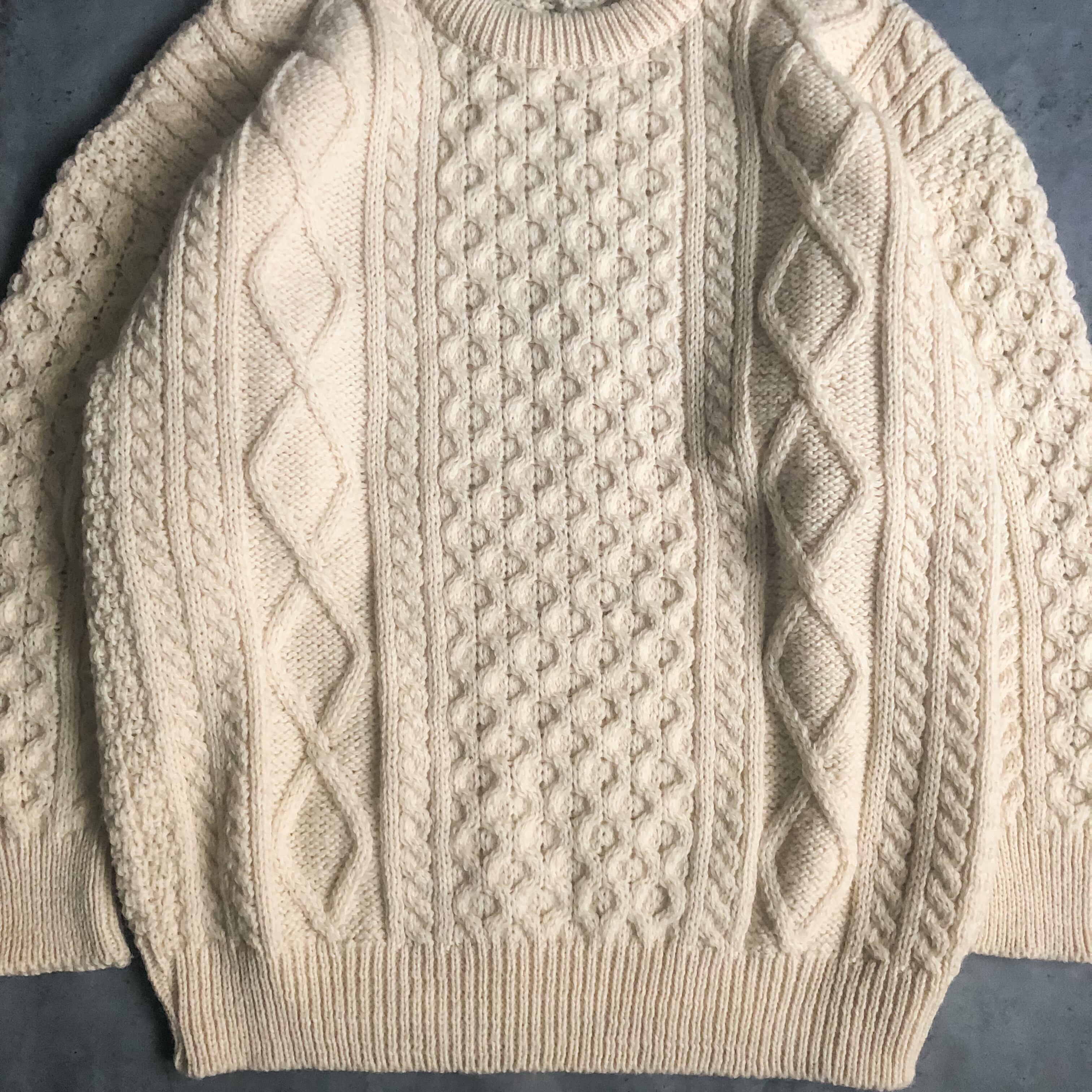 Vintage 1970's ivory wool fisherman sweater made in Ireland