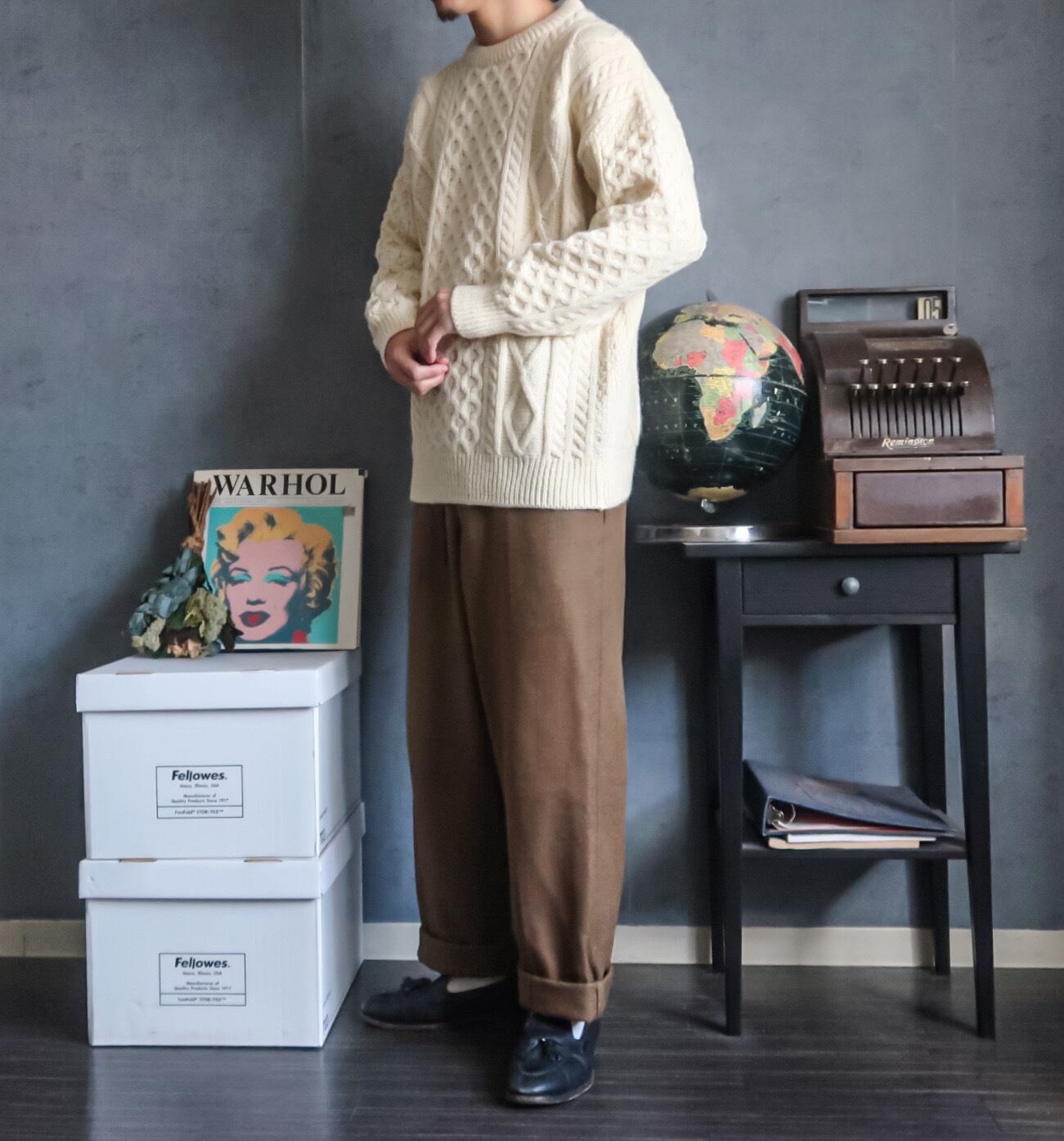 非常に上質なウールを使っており、職人の手作業で作られたニットは現代だと数万円はする価値のあるニットかと思います。