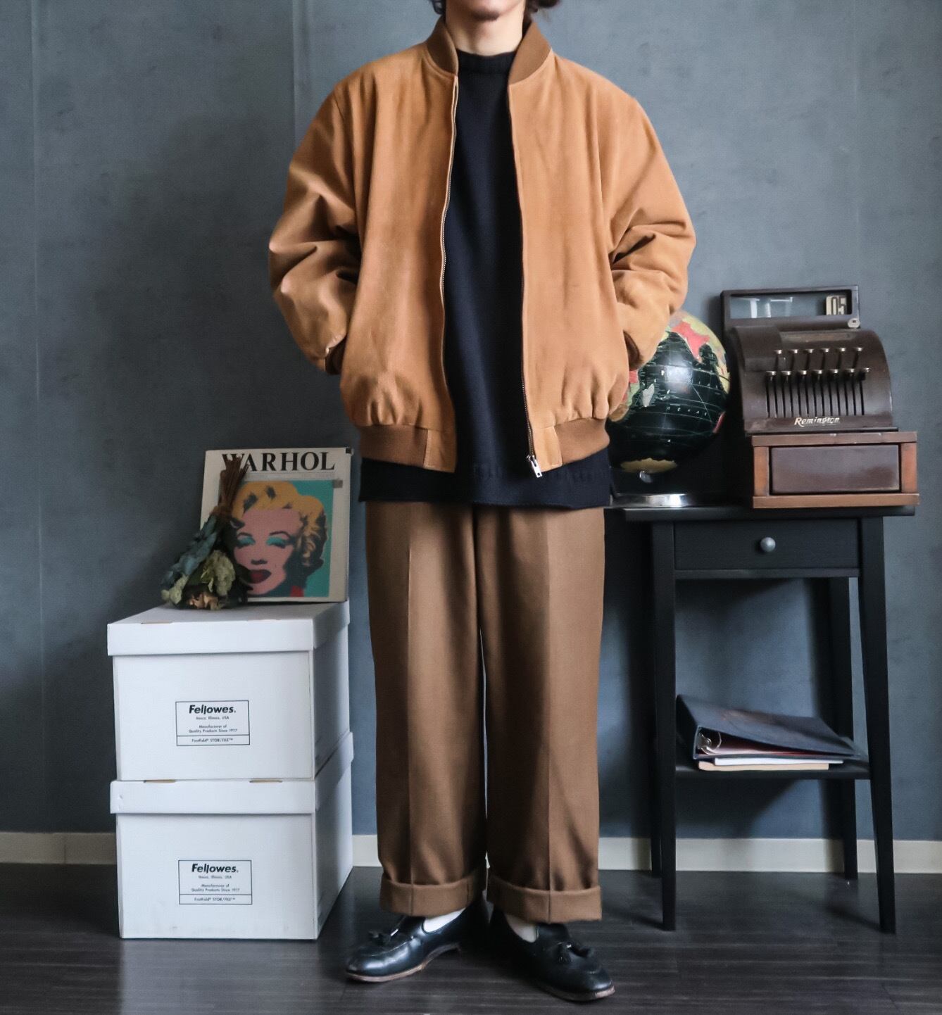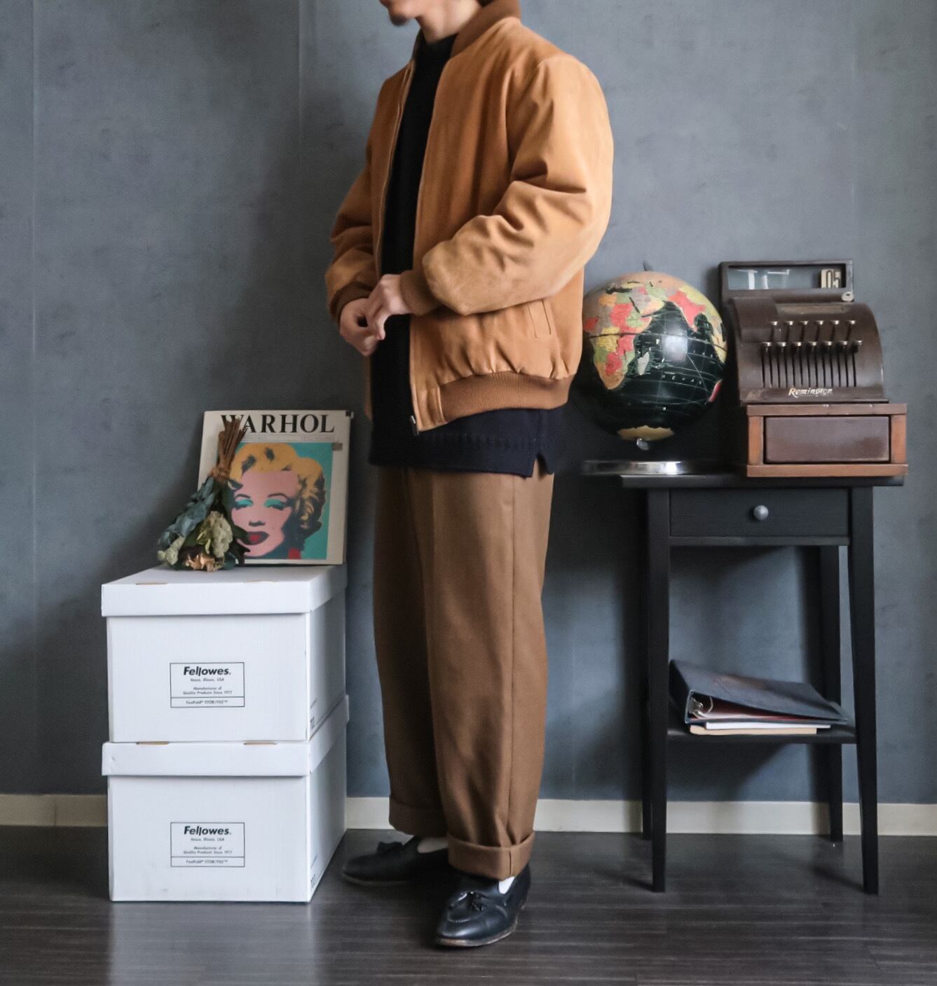 人気なMA-1タイプのスエードジャケットで、シンプルに作られたデザインは合わせるインナーにも困ることが少なく万能なジャケットですね。