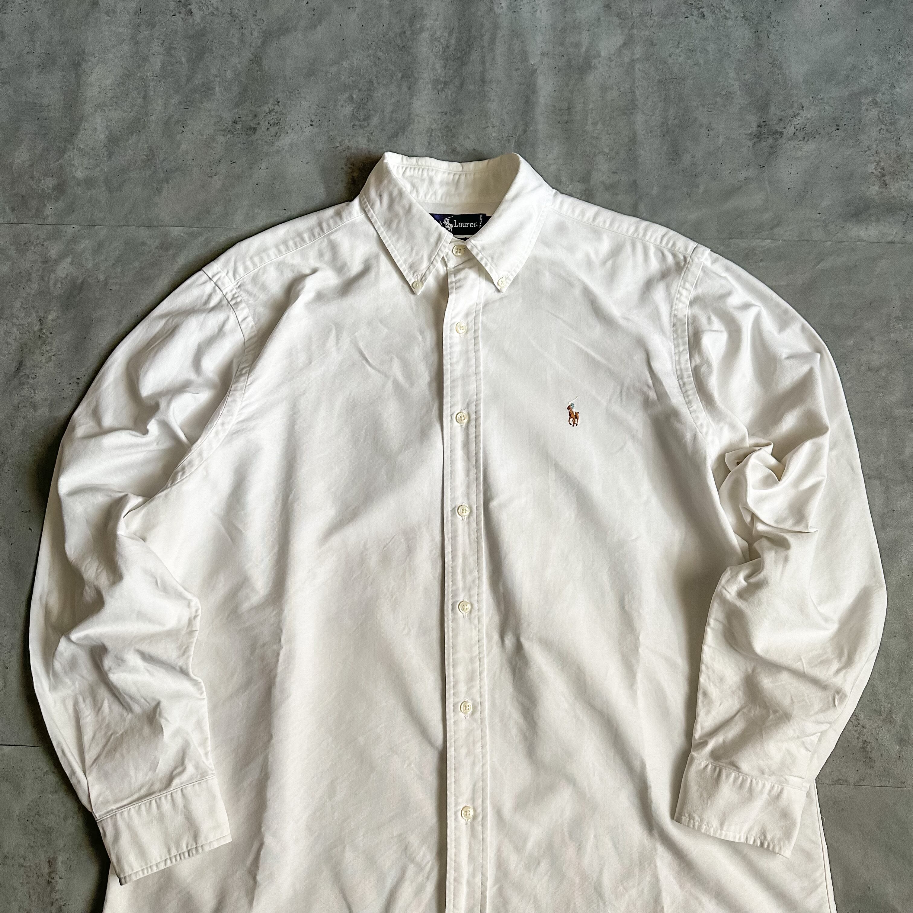 1990's "Ralph Lauren" bigsize white B/D cotton shirt