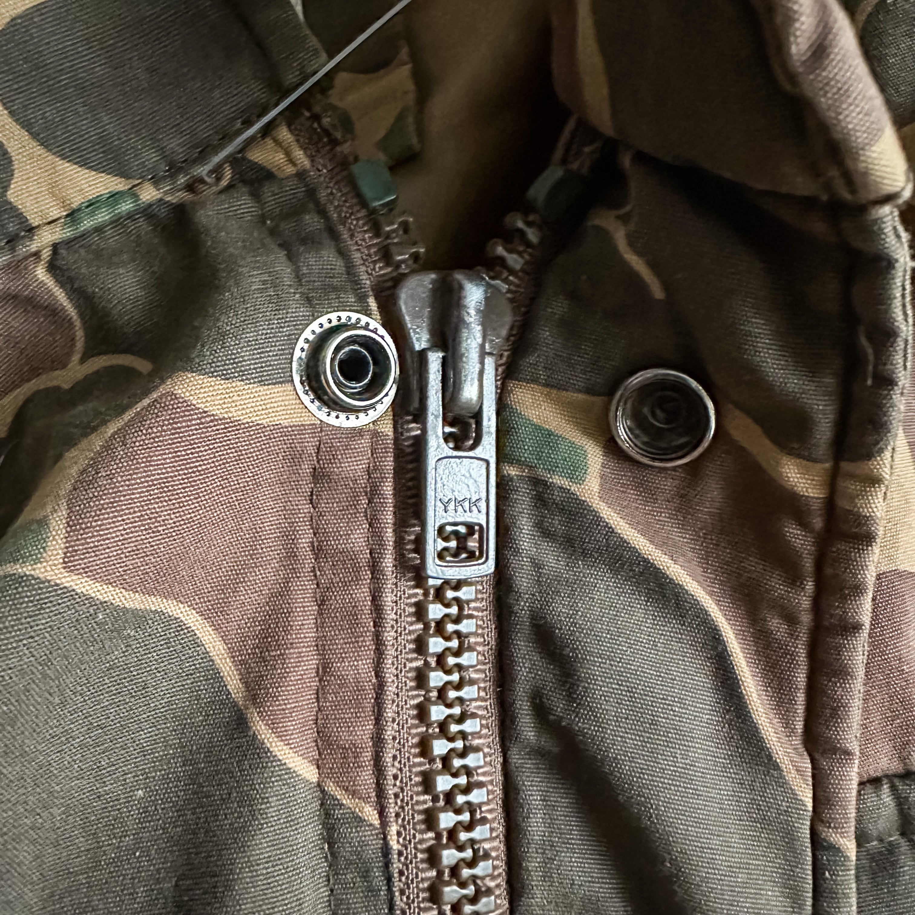 フラップ付きの三つポケに、ダックハンターカモが使用されたクールな一着です。