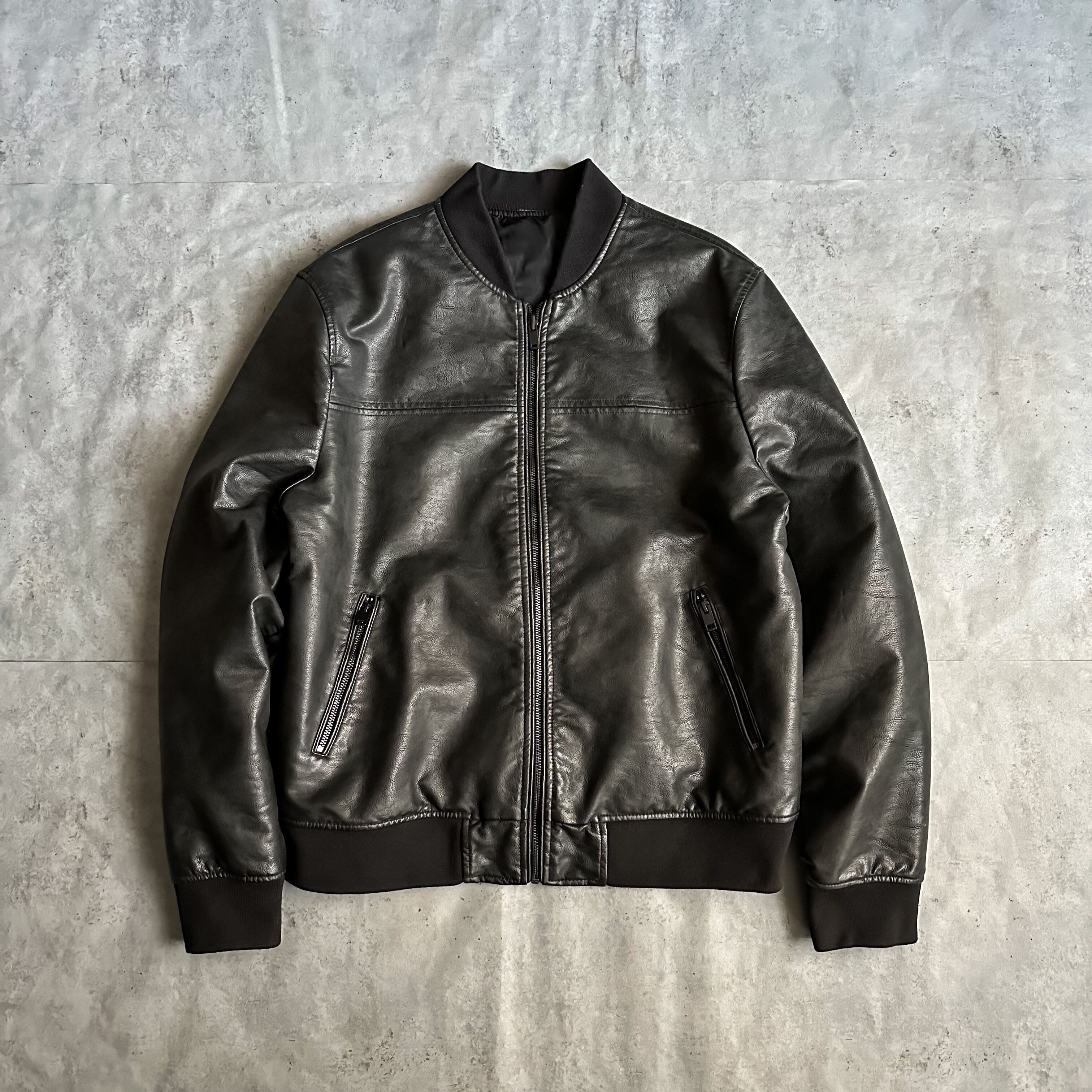 1990's~ faux leather×nylon reversible MA-1 jacket