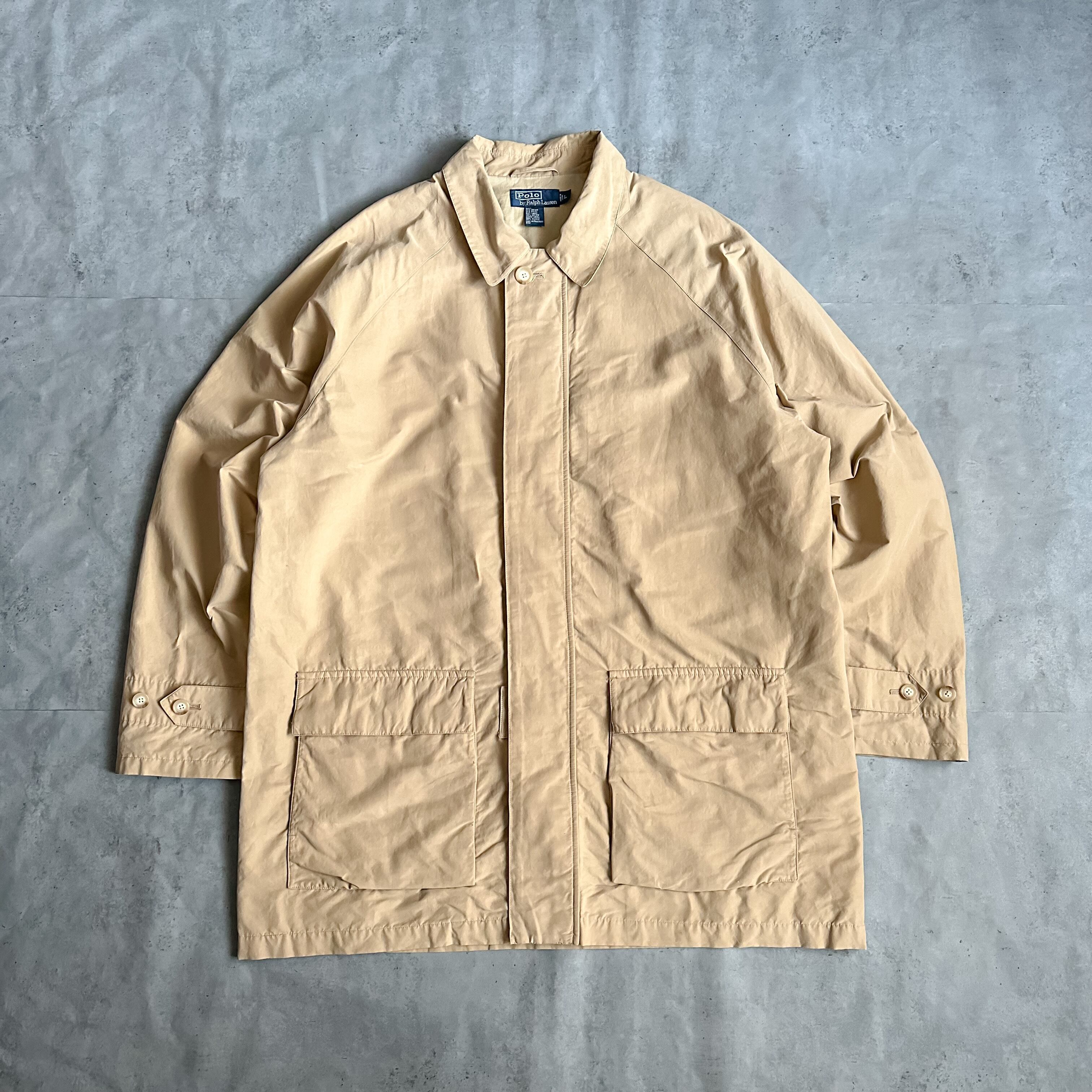 特徴 :ベージュカラーに大きな2ポケ、バルマカーンコートの様な比翼仕立てがクールな1990's頃のポロラルフローレンのジャケット。