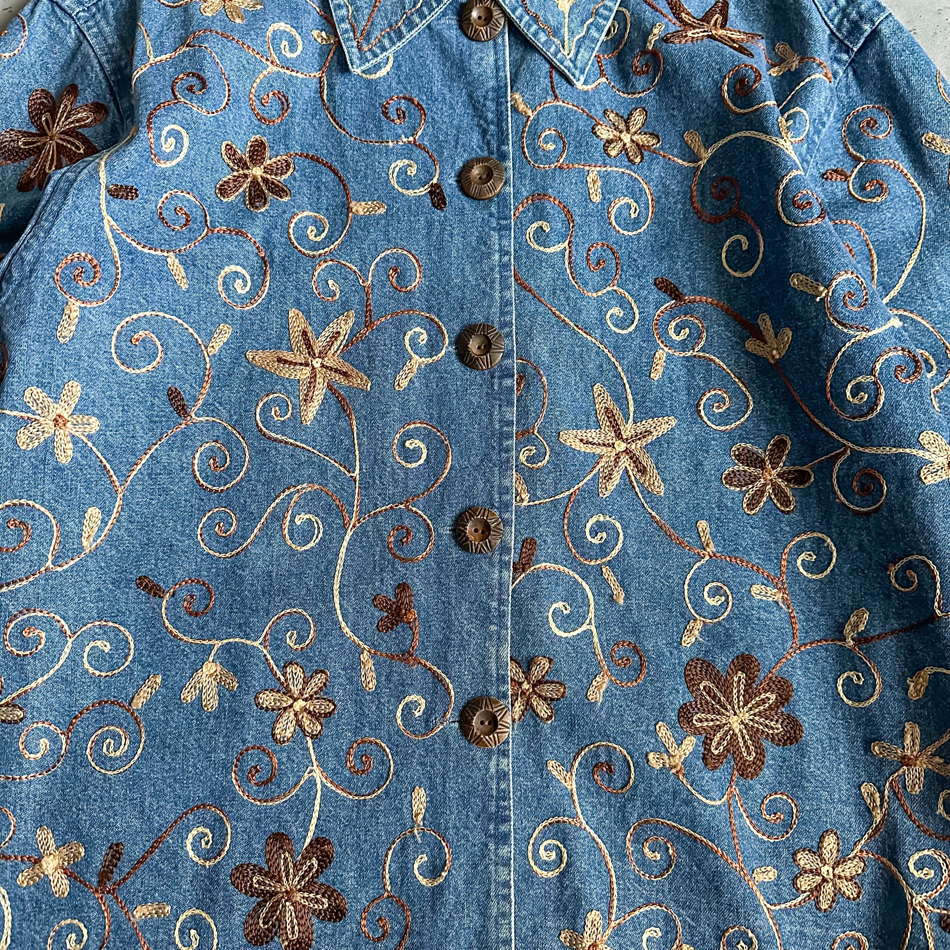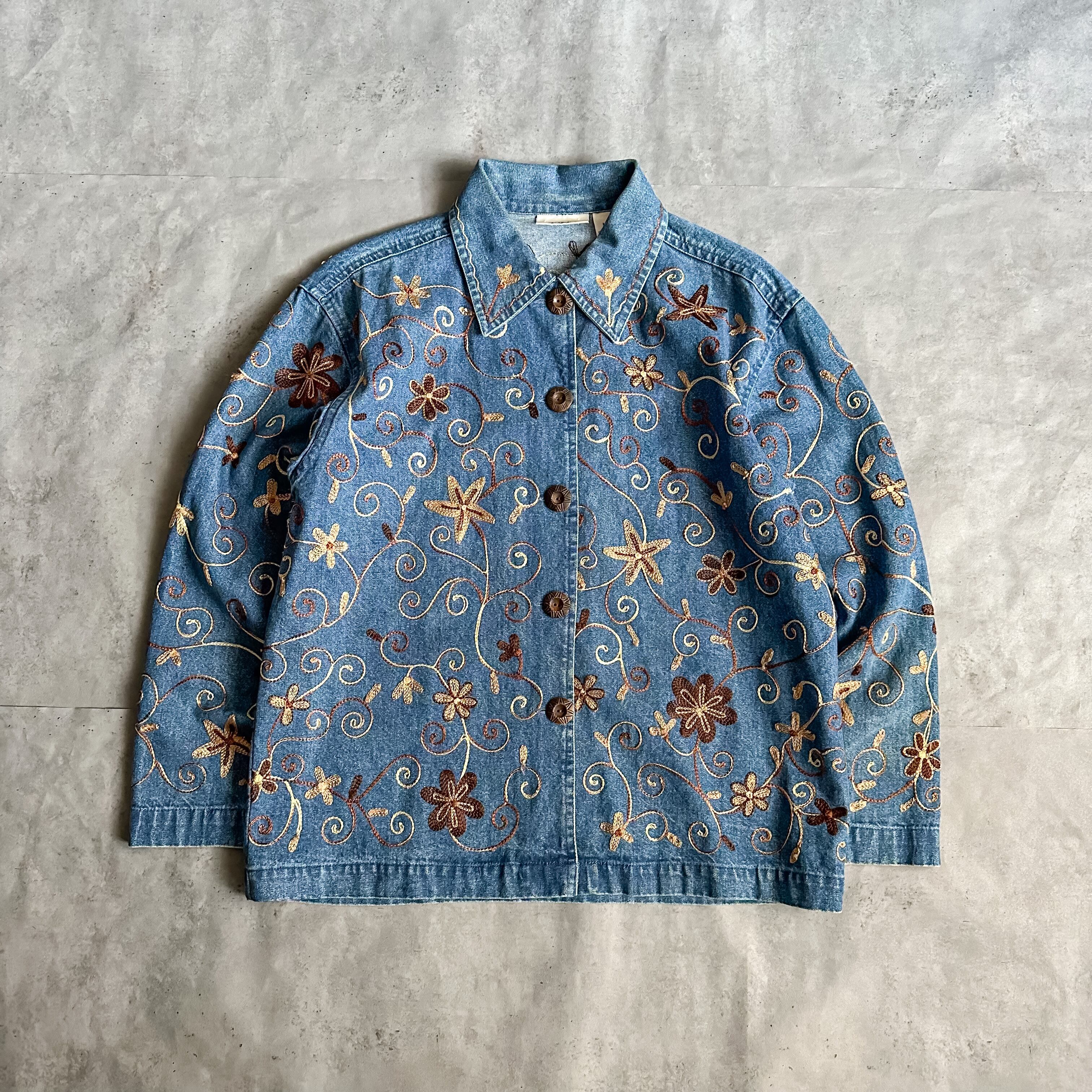 特徴 :花や草木などのインド刺繍が豪華に全面に入る1990's頃のグッドなデニムジャケット。