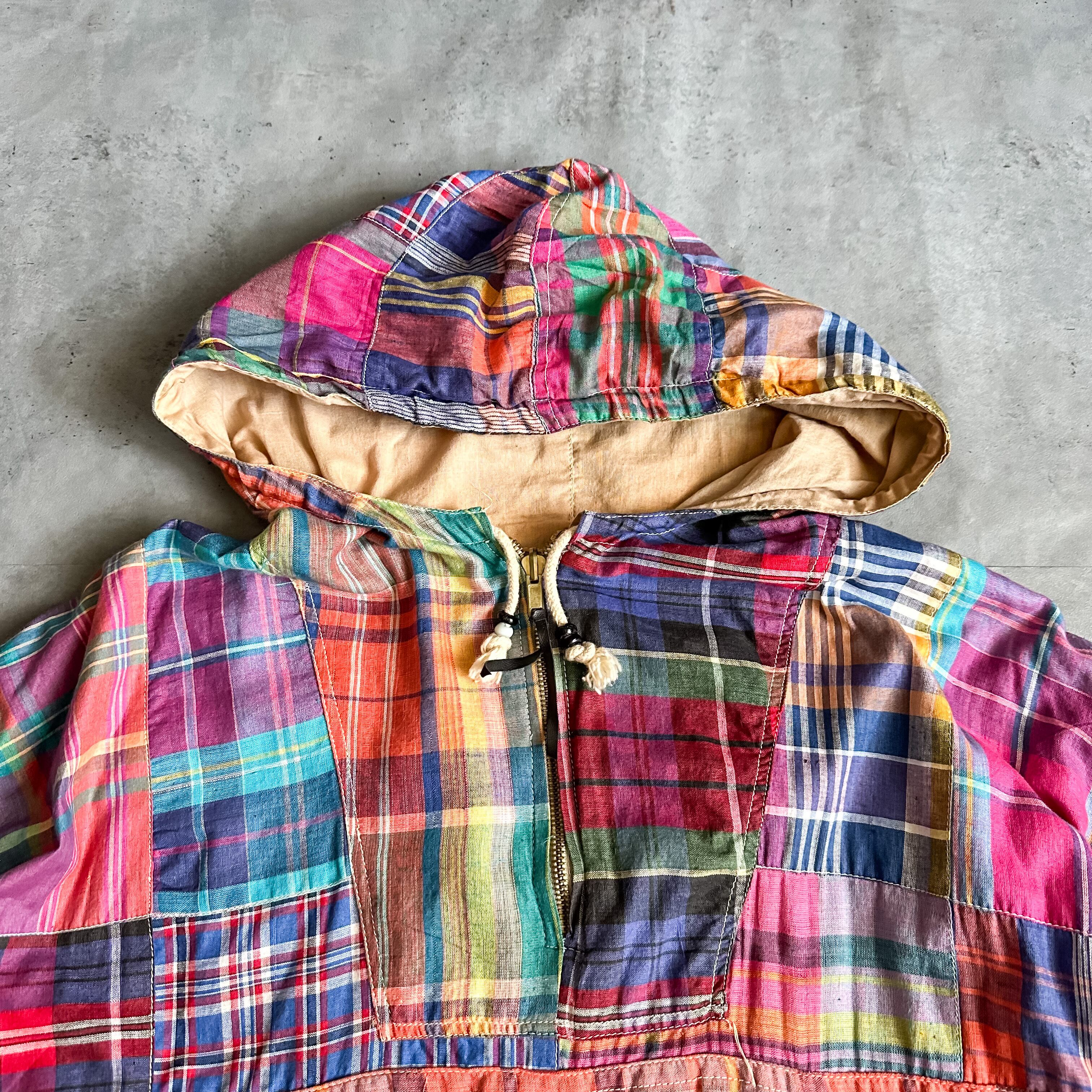 浅い年代とはいえマドラスチェックのパッチワークのアノラックパーカーはそうそう出会える事はないでしょう。