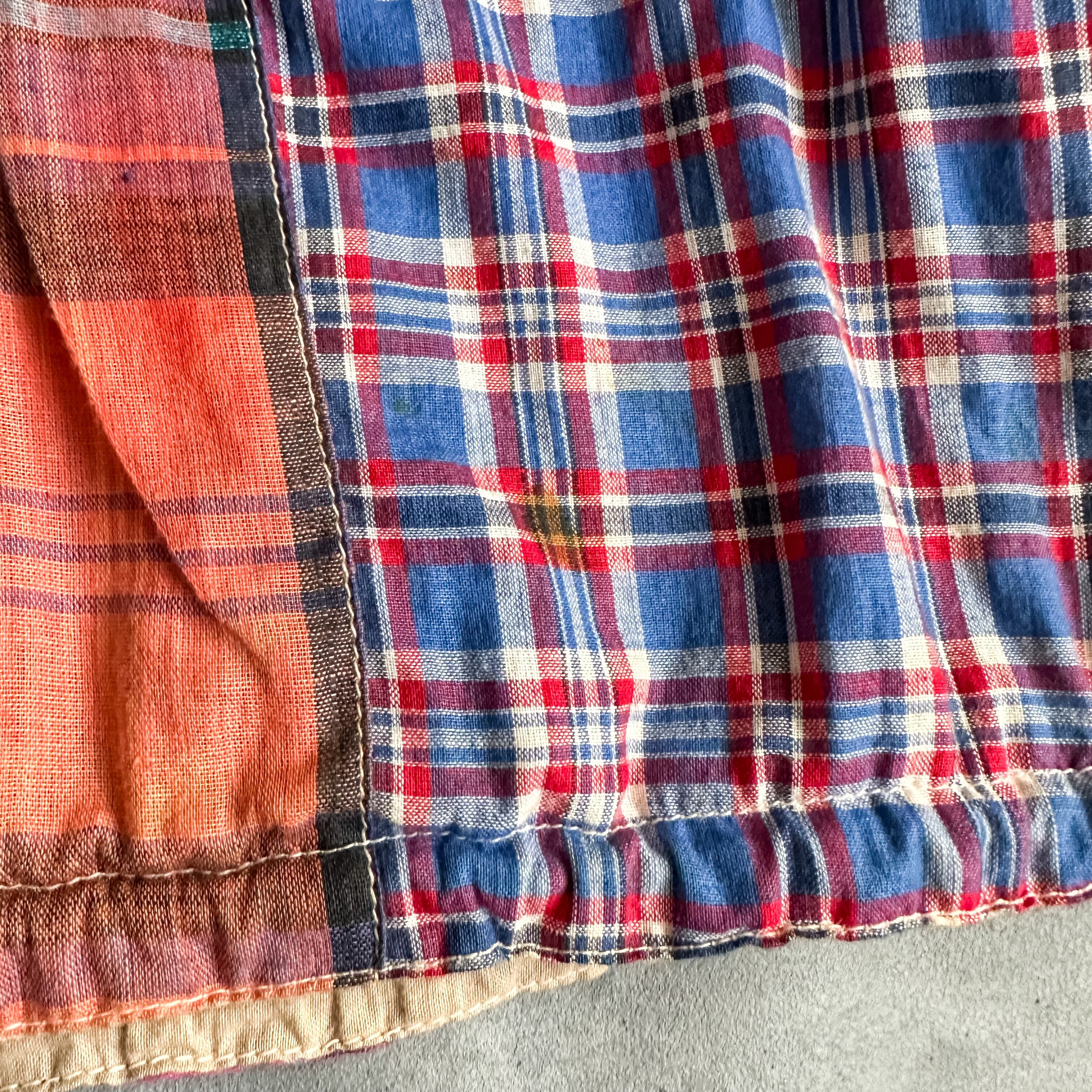 配色の良いマドラスチェック柄のパッチワークになった素晴らしい逸品です。