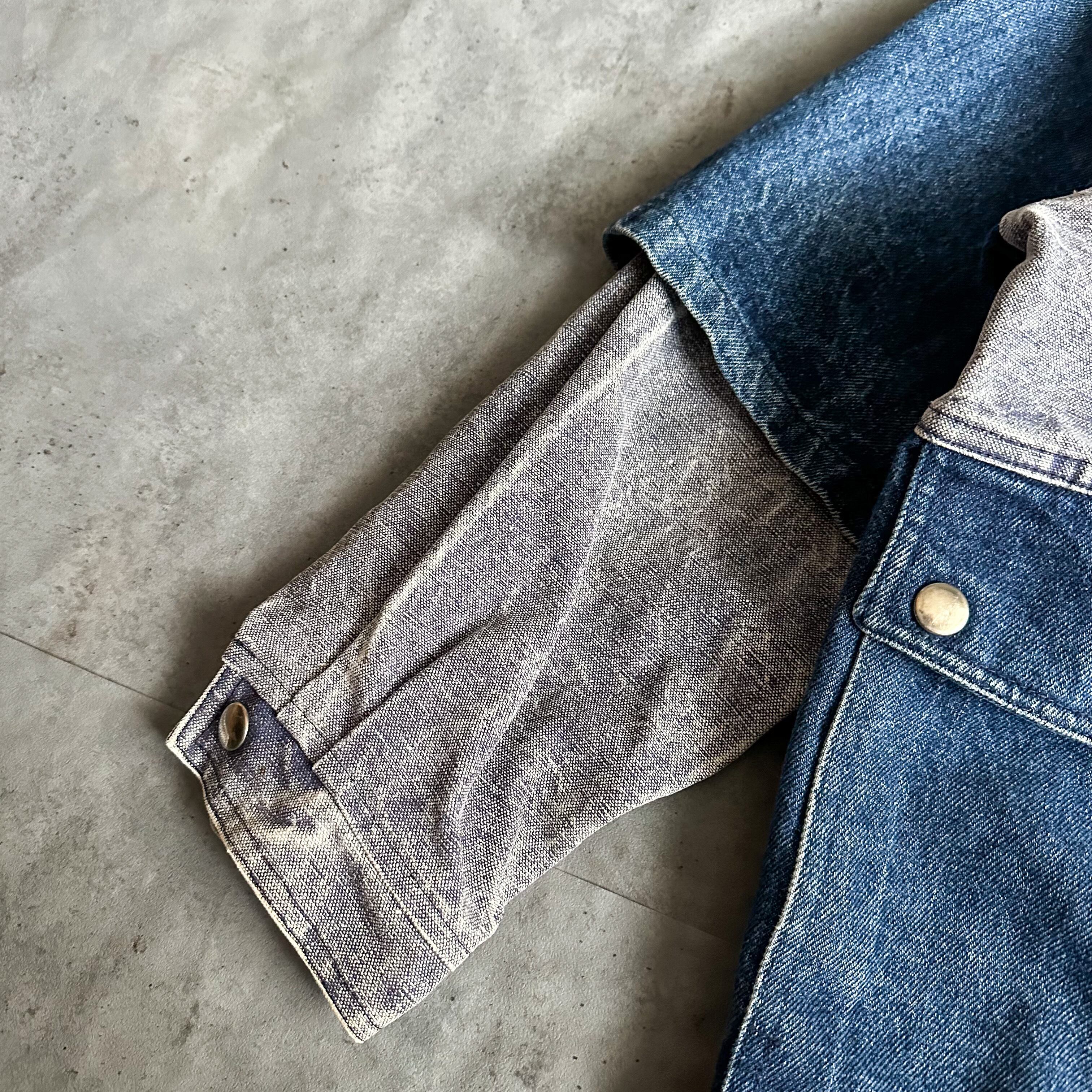 二つのデニム生地を使用し、大胆な切り替えのデザインになったセンスのある一着です。