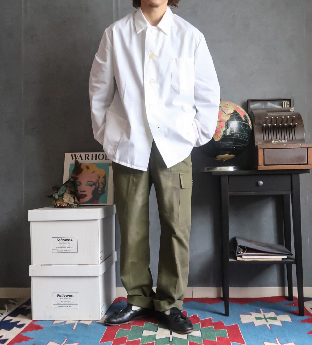 ブルーやネイビーのユーロワークジャケットはありますが、ホワイトって意外に出てこないですよね。