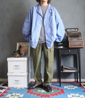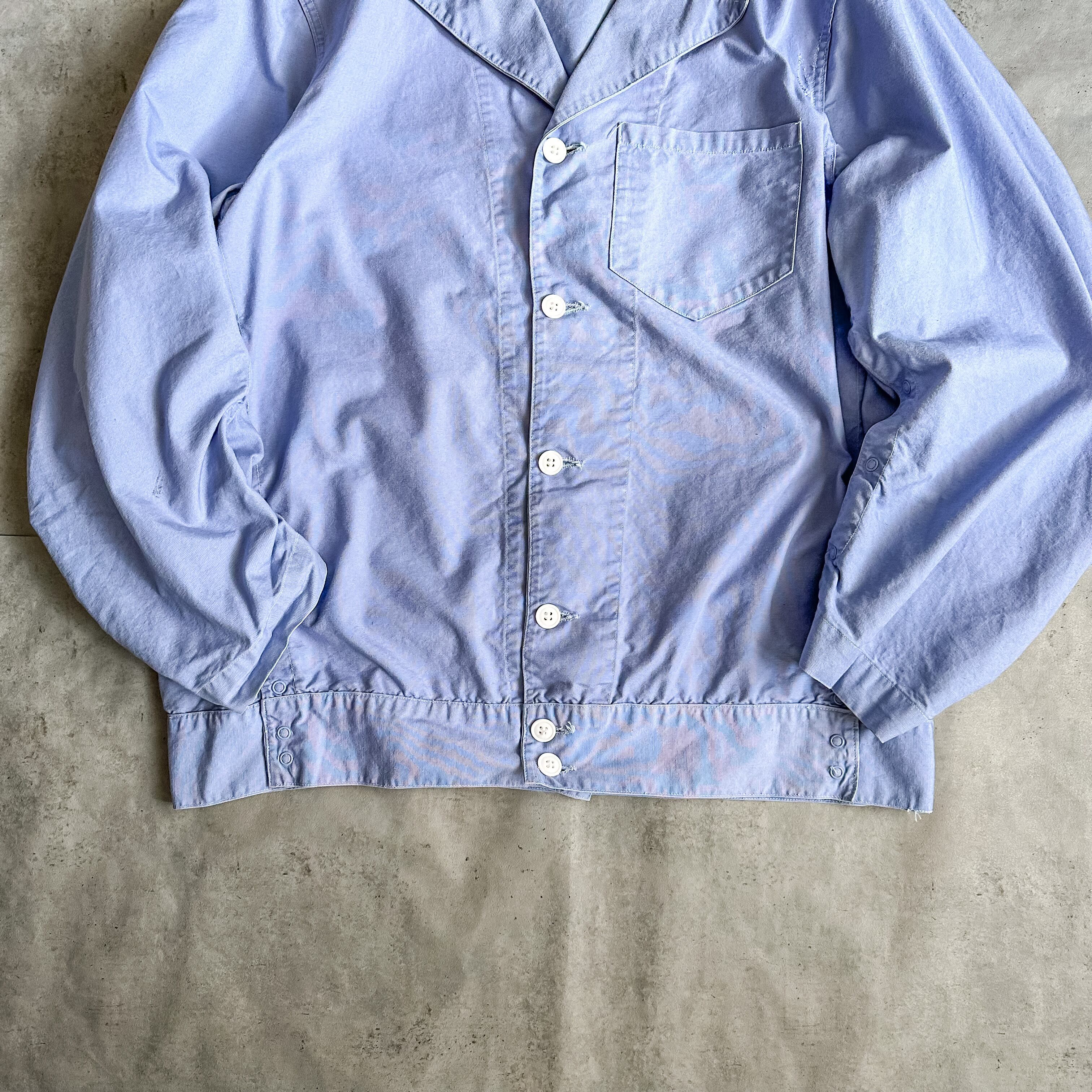 Vintage 1960's US ARMY sax blue open collar cotton pajama jacket