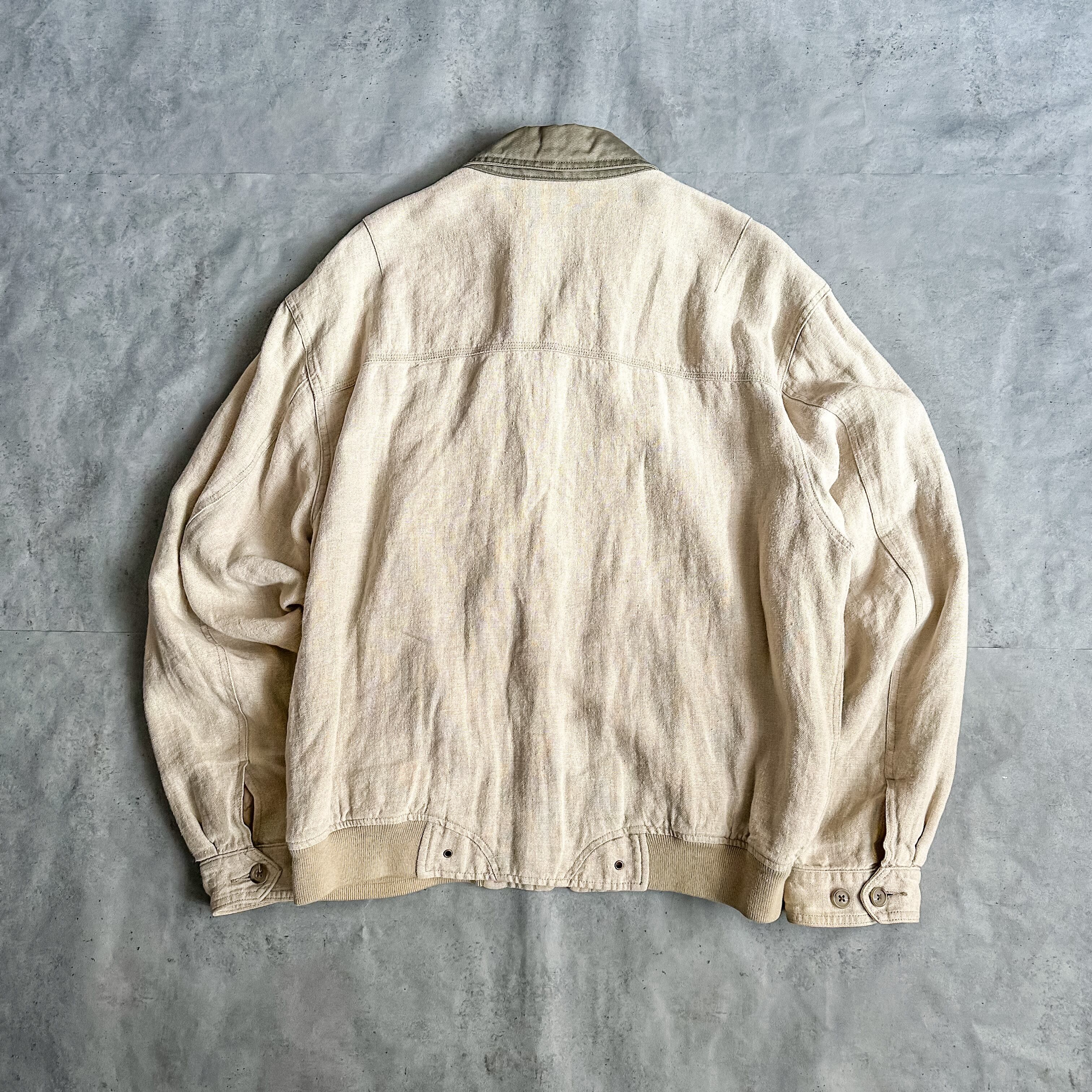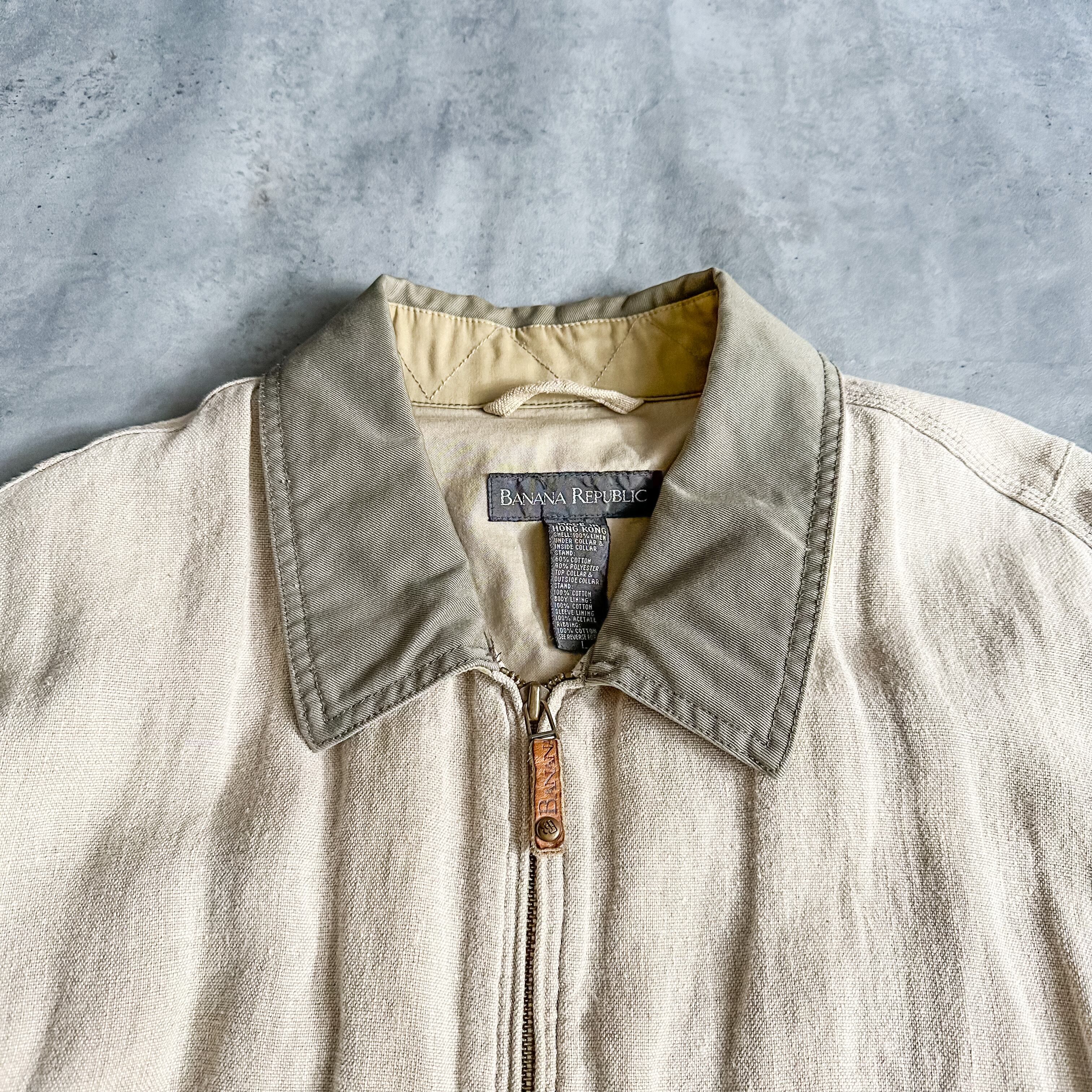 1990's BANANA REPUBLIC ecru color linen drizzler jacket made in HONG KONG
