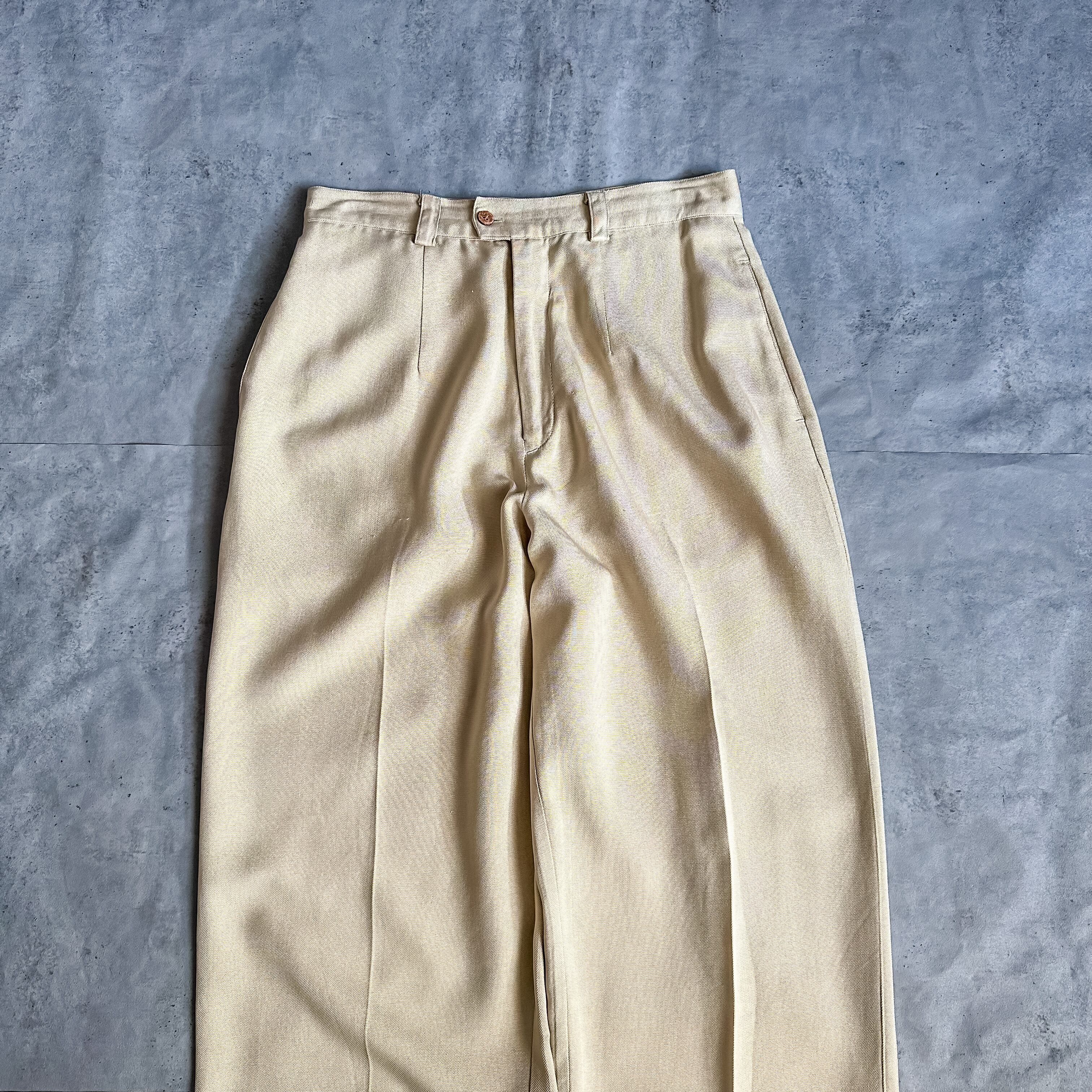 特徴 :少し光沢感のある絶妙なベージュ系のカラーが独特な表情を醸し出してくれるクールな1990's~頃のシルクスラックス。