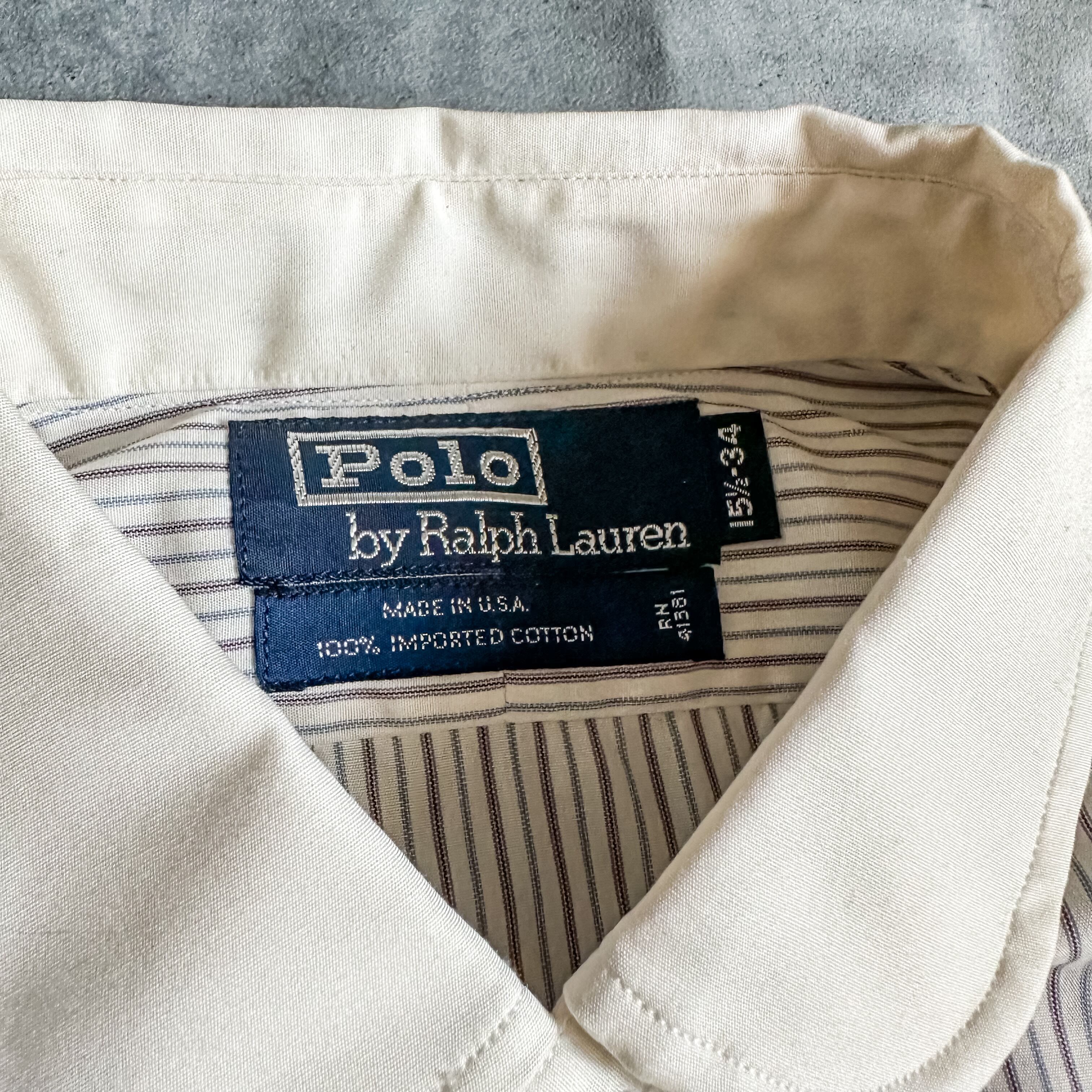 特徴 :希少なフラッシャー付きデッドストックの1980's~頃のラルフローレンのコットンシャツ。