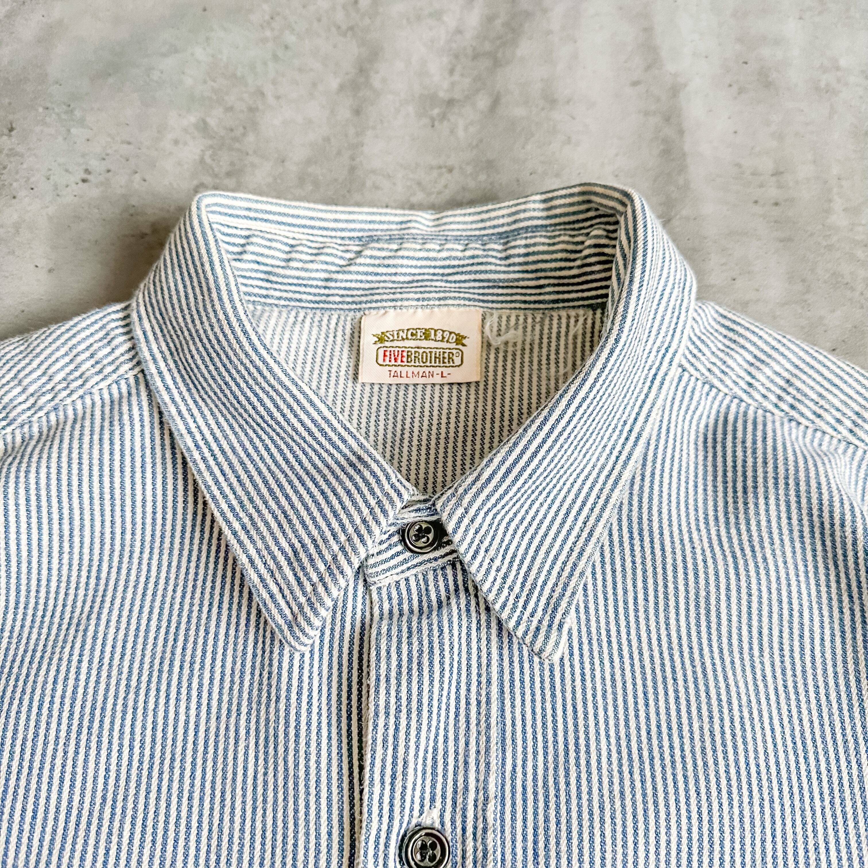 1990's FIVE BROTHER hickory stripe pattern work shirt ②