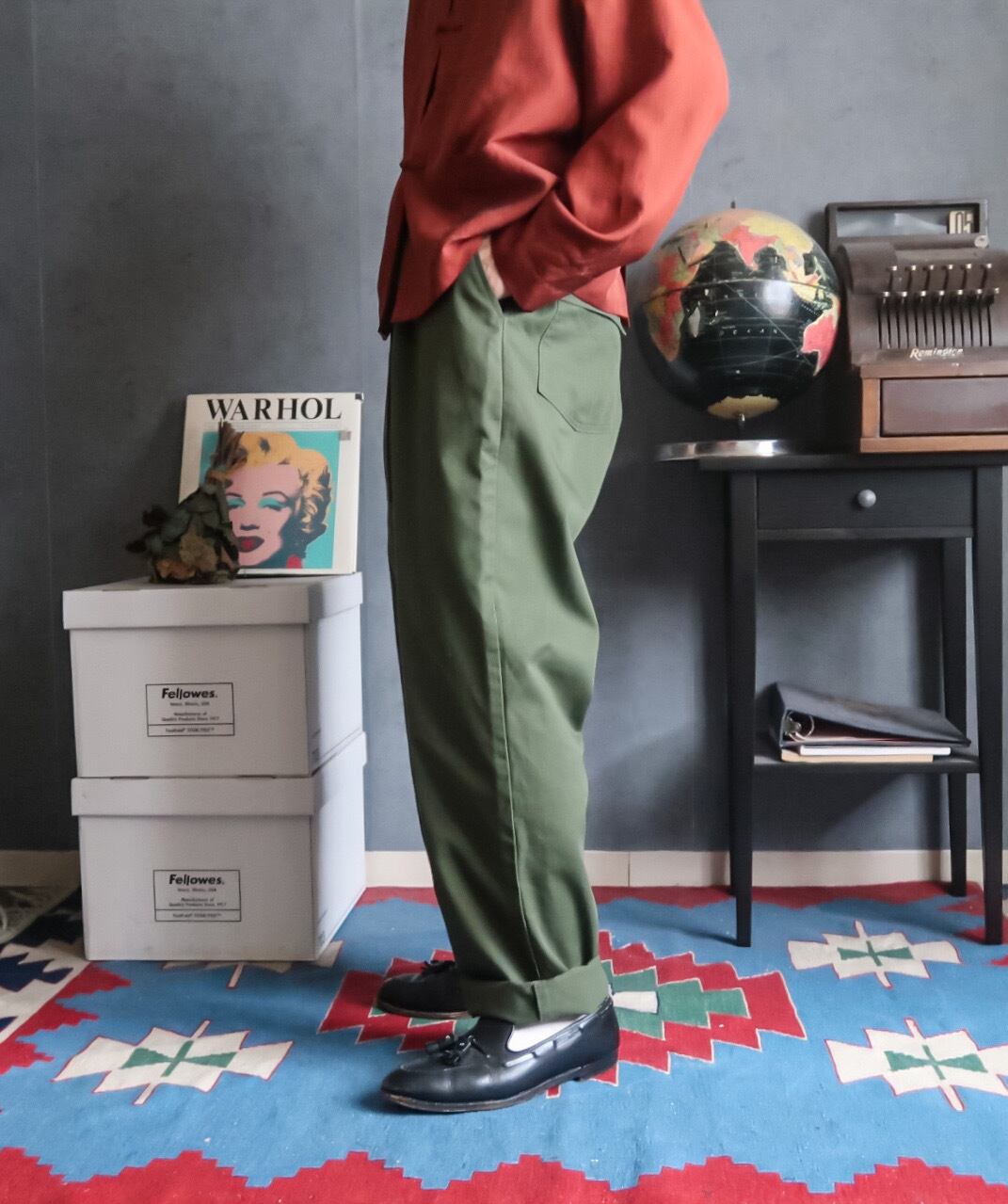 古いオールコットンの物に比べて、こちらはセンタープレスが入り裾にかけて少しテーパードのかかるシルエットも魅力でしょう。