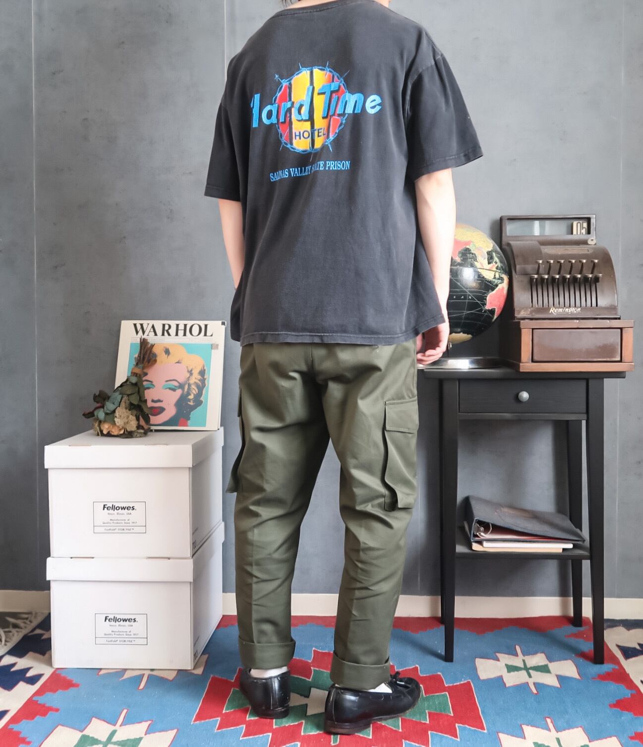 フロントにはワンポイントで手錠のプリント、バックにはハードロックカフェを思わせるようなパロディーのプリント。